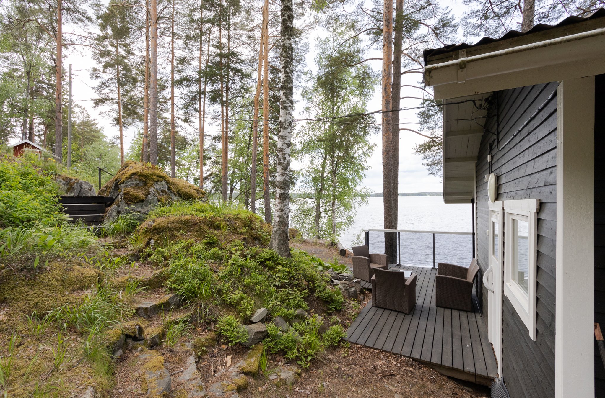 Tontin sydämessä sijaitseva päärakennus hurmaa uudistetulla keittiöllään ja viihtyisällä oleskelutilallaan, joka avautuu katetulle kuistille – täydelliselle paikalle nauttia aamukahvit luonnon rauhassa. Erillisessä saunarakennuksessa löydät lempeät löylyt. Saunan terassilta aukeaa upeat järvimaisemat.