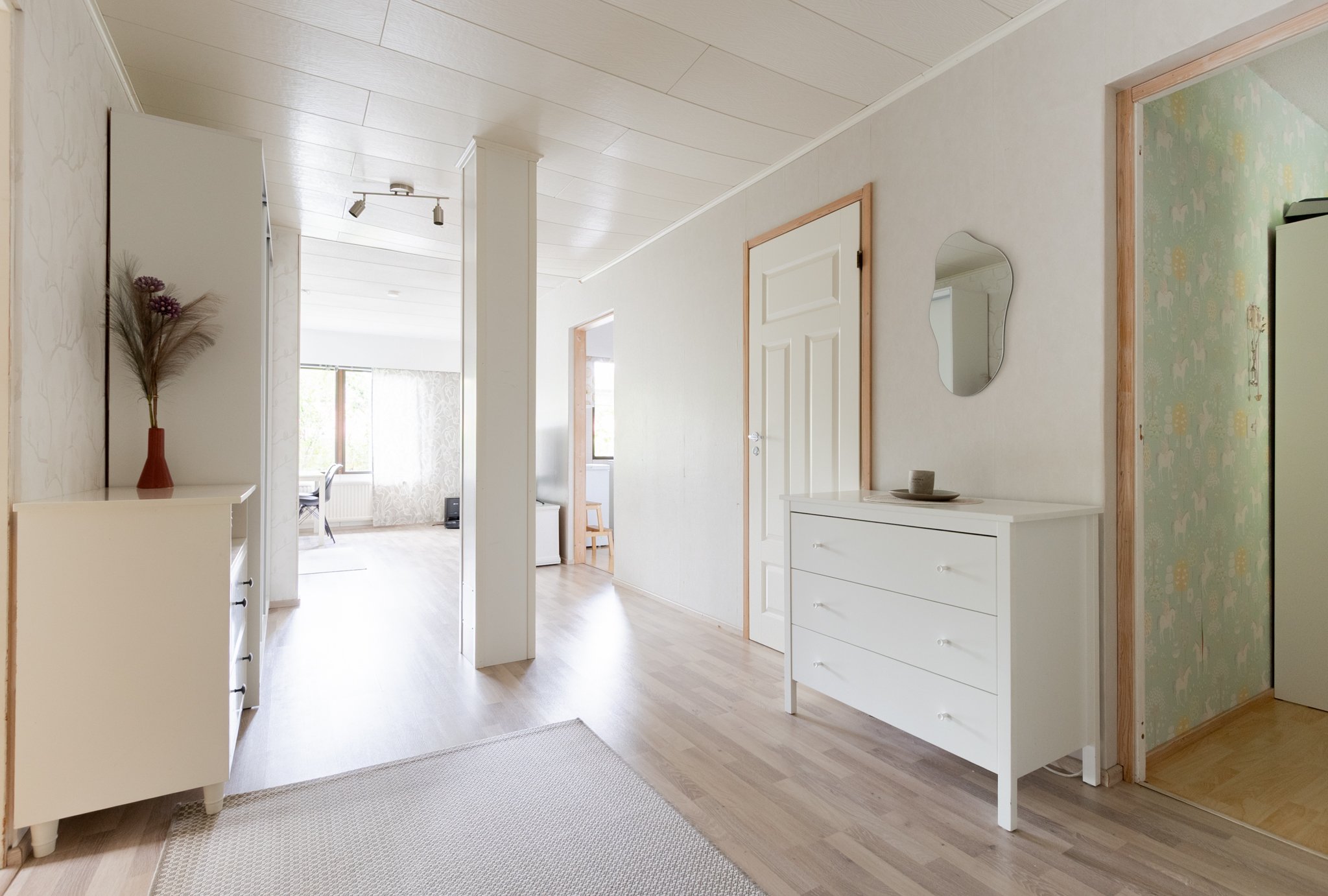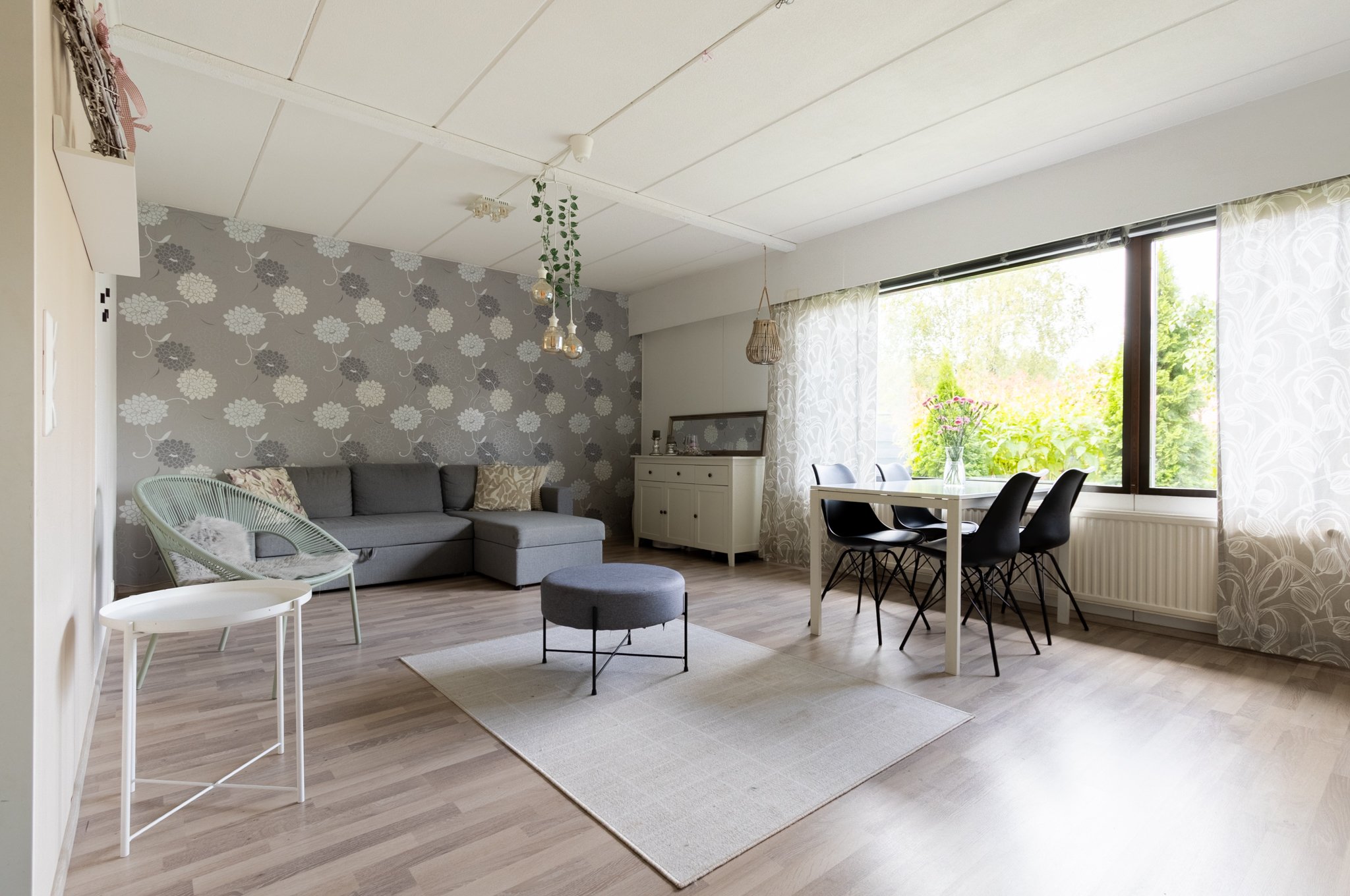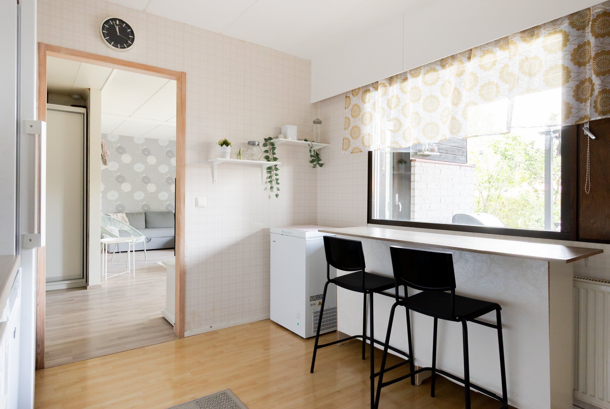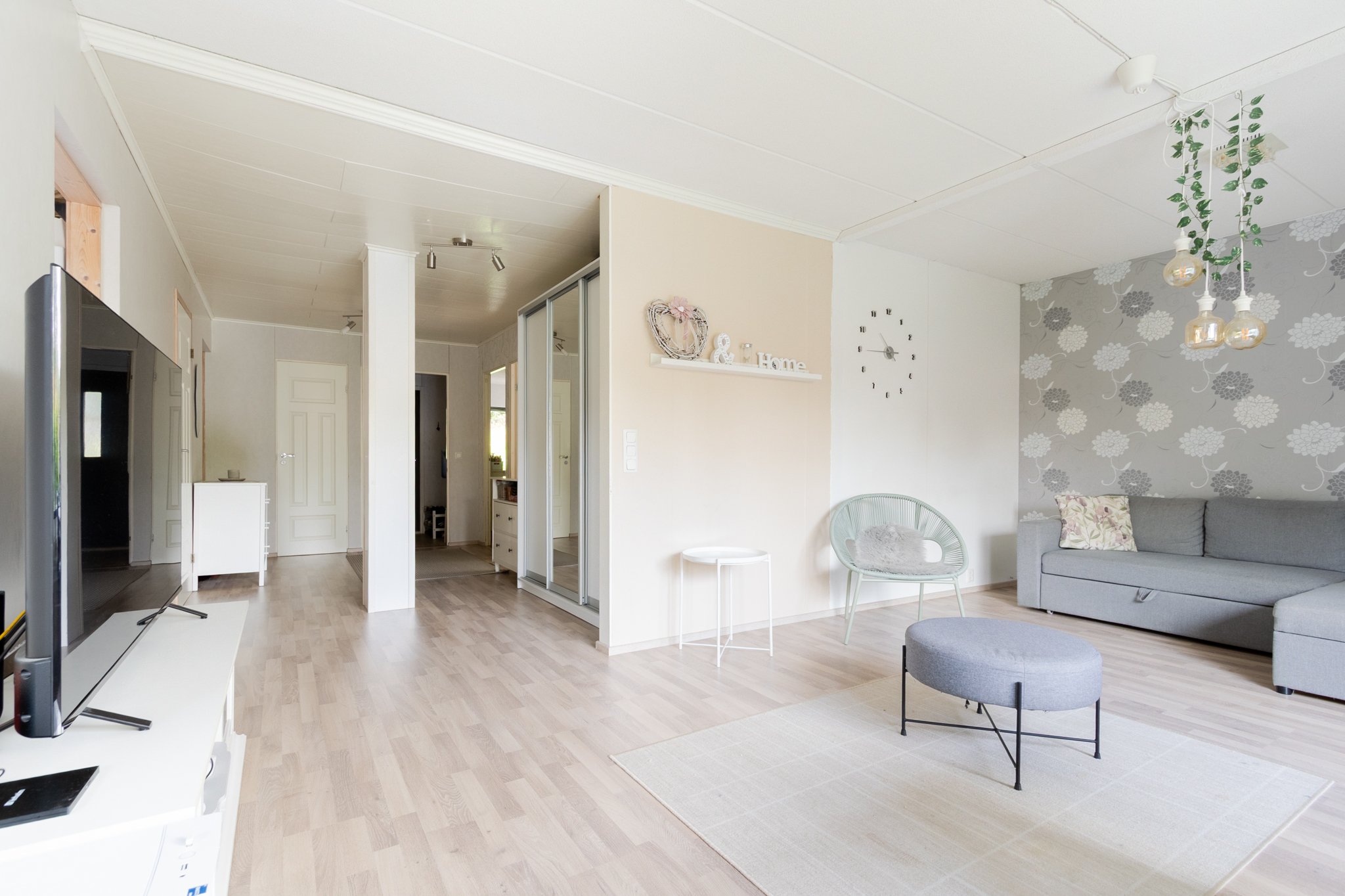 Keittiö on remontoitu vastaamaan nykypäivän tarpeita, ja sieltä löytyvät kaikki tarvittavat kodinkoneet arjen helpottamiseksi. Olohuone ja makuuhuoneet on sisustettu laminaattilattioilla ja maalatuilla tai tapetoiduilla seinillä, luoden lämpimän ja kutsuvan tunnelman. Oma sauna tarjoaa rentoutumishetkiä kiireisen päivän päätteeksi.