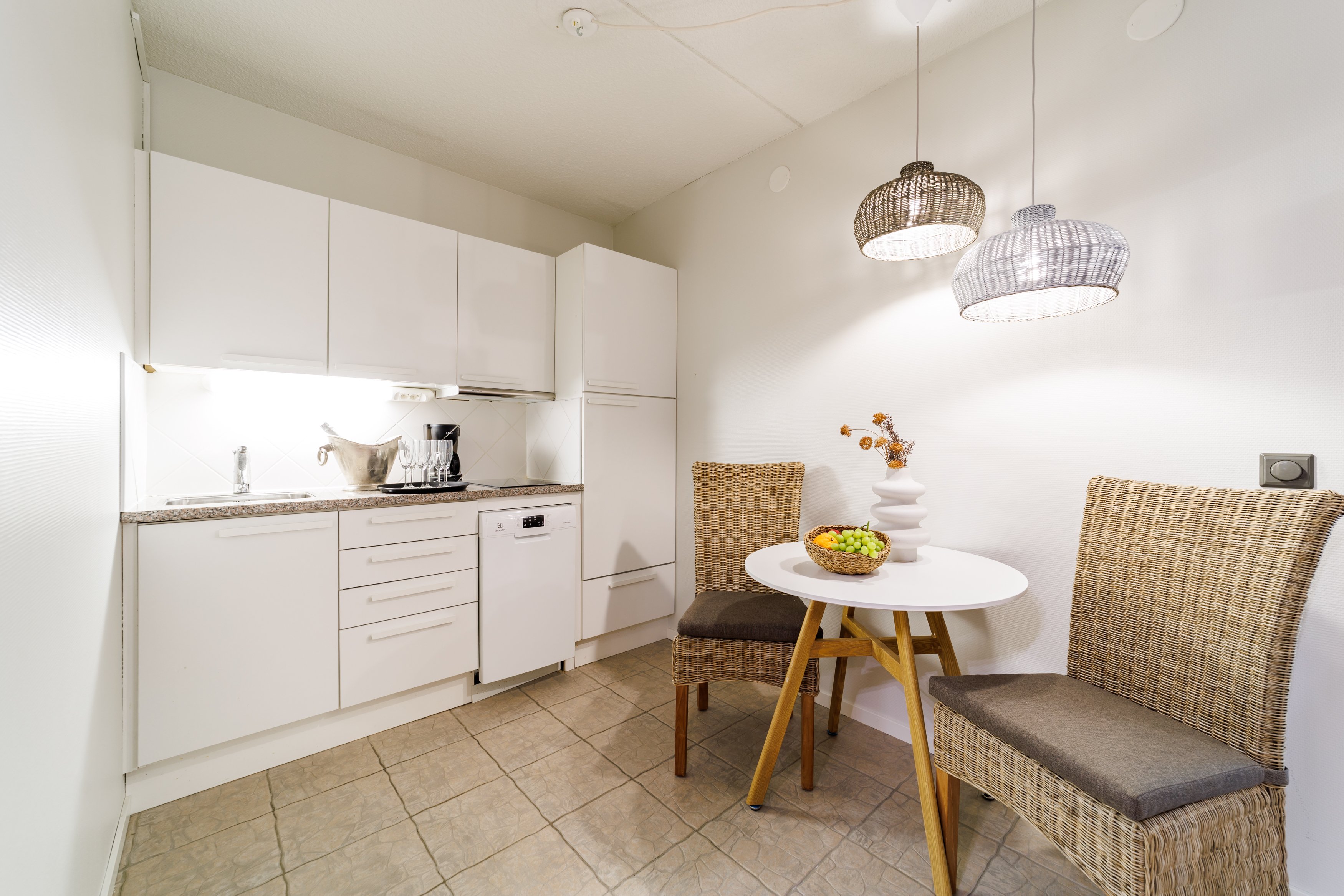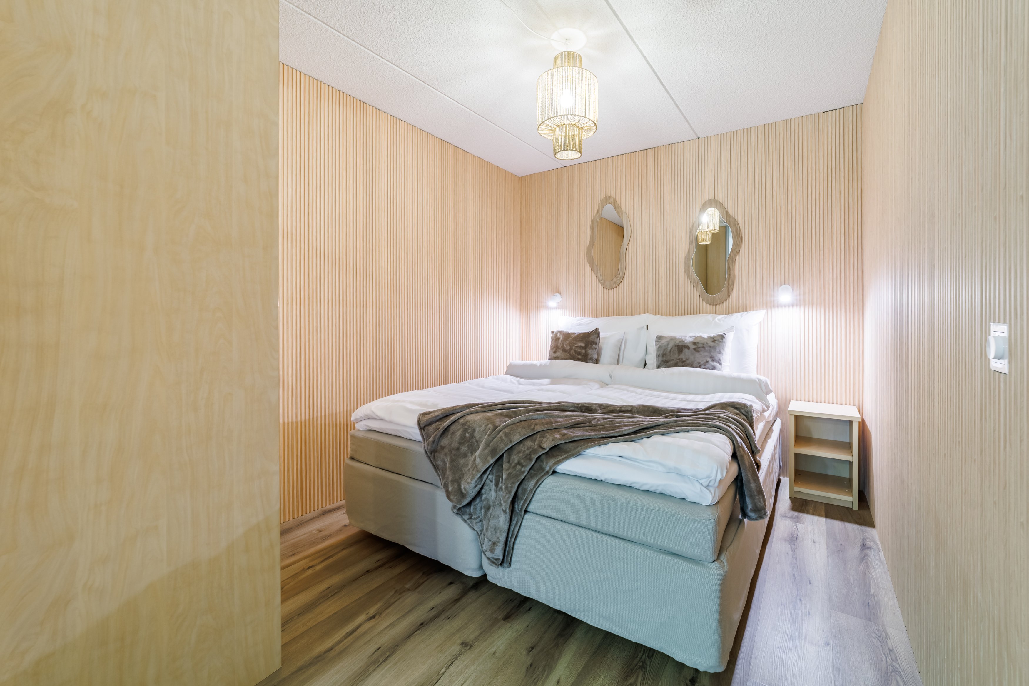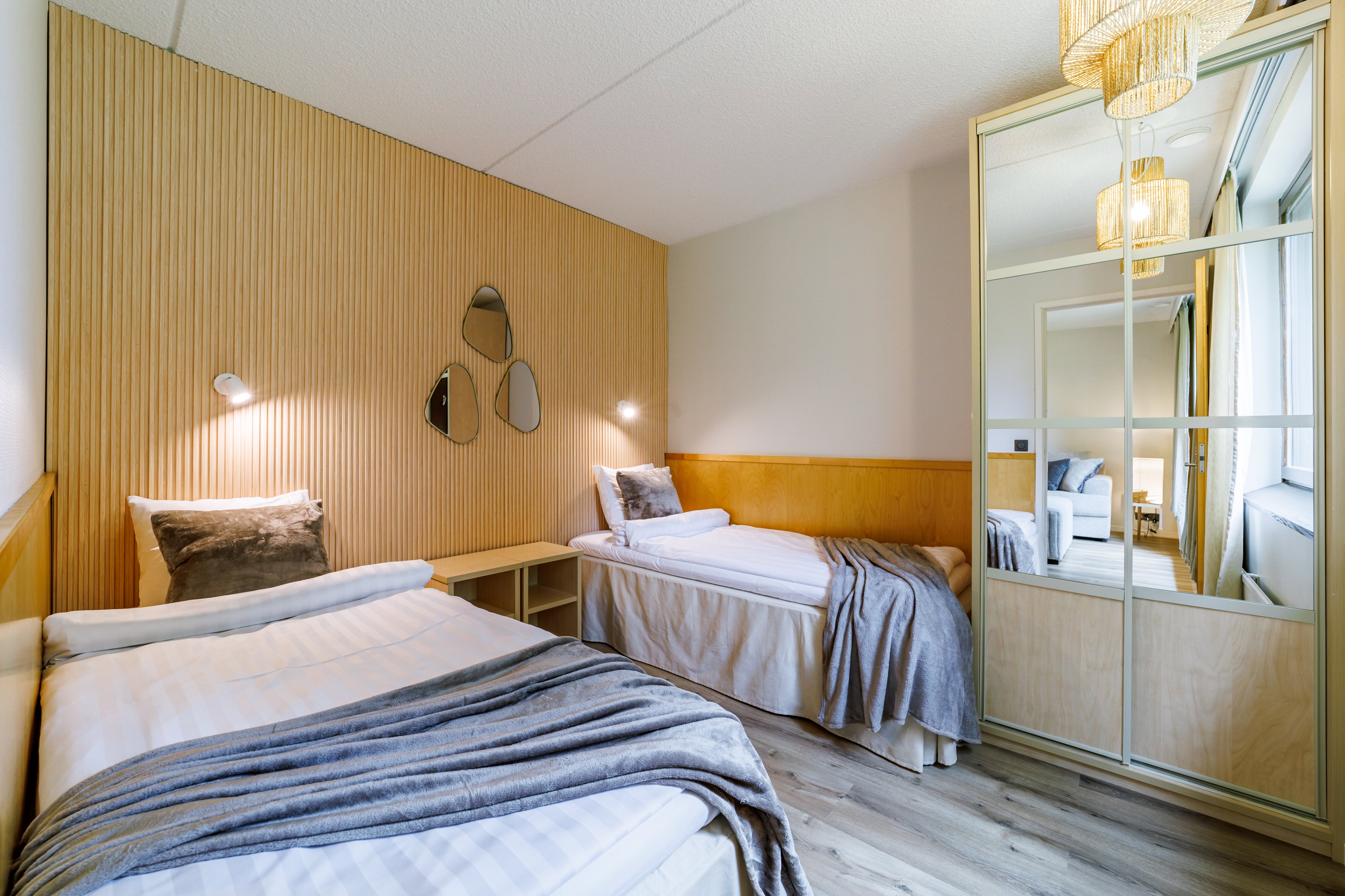 Kaksio sijaitsee talon toisessa kerroksessa, ja sen tilaratkaisut on suunniteltu käytännöllisiksi. Virallisen makuuhuoneen lisäksi asunnossa on rakennettu toinen makuu-alkovi, mikä mahdollistaa jopa kuuden hengen majoittumisen mukavasti. Kylpyhuoneessa on lattialämmitys, joka lisää arjen mukavuutta ja tuo ripauksen luksusta.