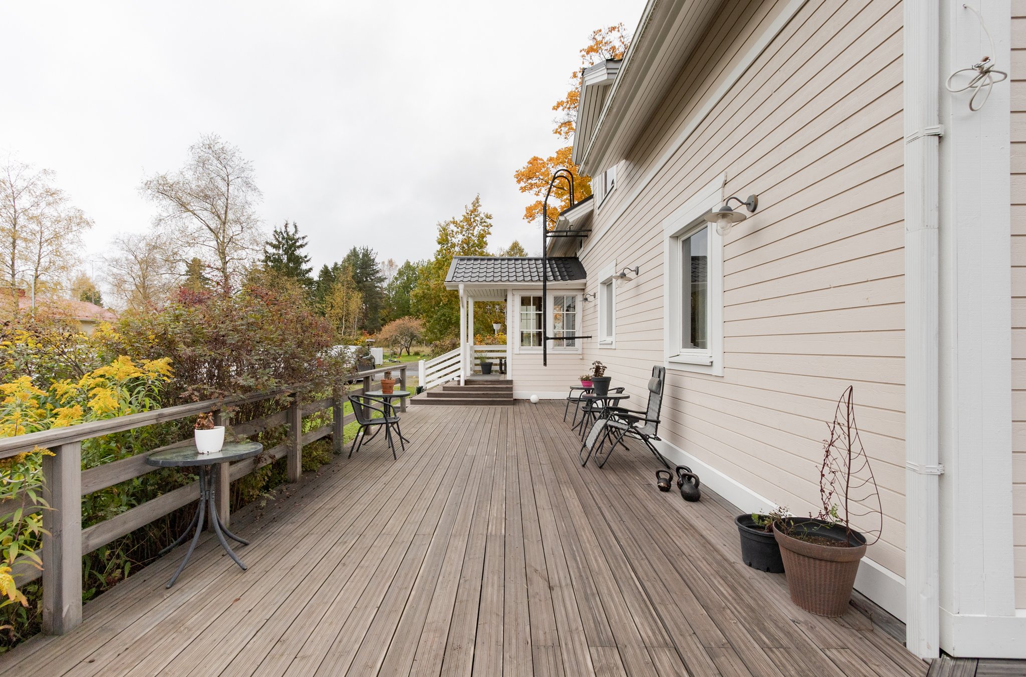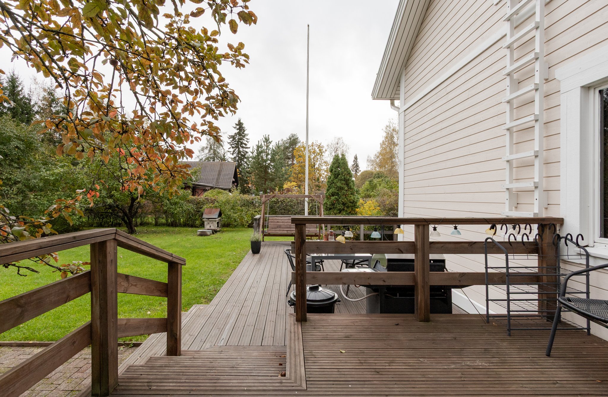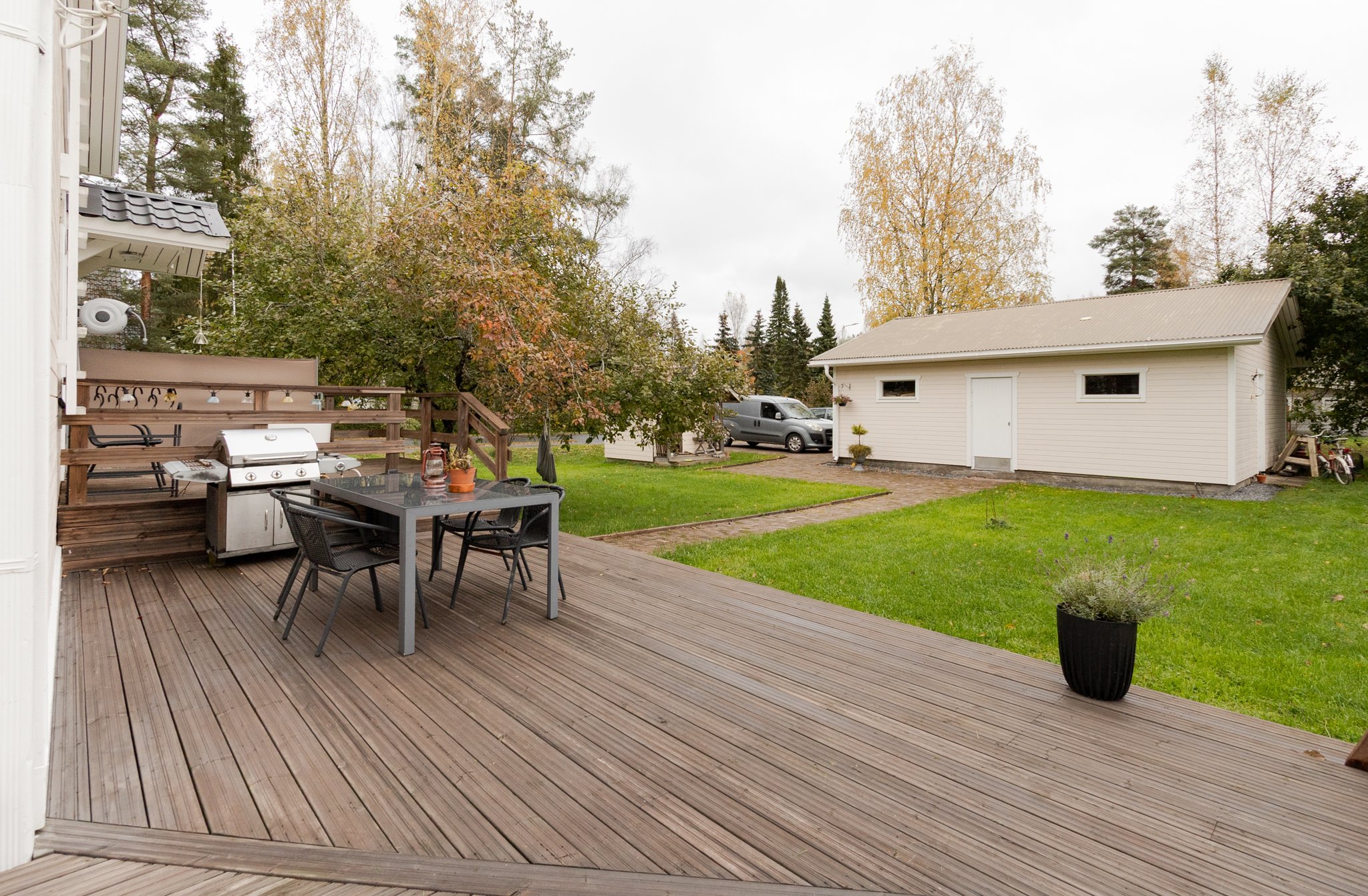Taloa ympäröi oma 1133 m² tontti, jossa on tilaa lasten leikeille ja puutarhanhoidolle. Vuonna 2015 rakennettu terassi tarjoaa oivan paikan kesäpäivien viettoon. Lisäksi autotalli ja varastotilat tuovat käytännöllisyyttä arkeen.