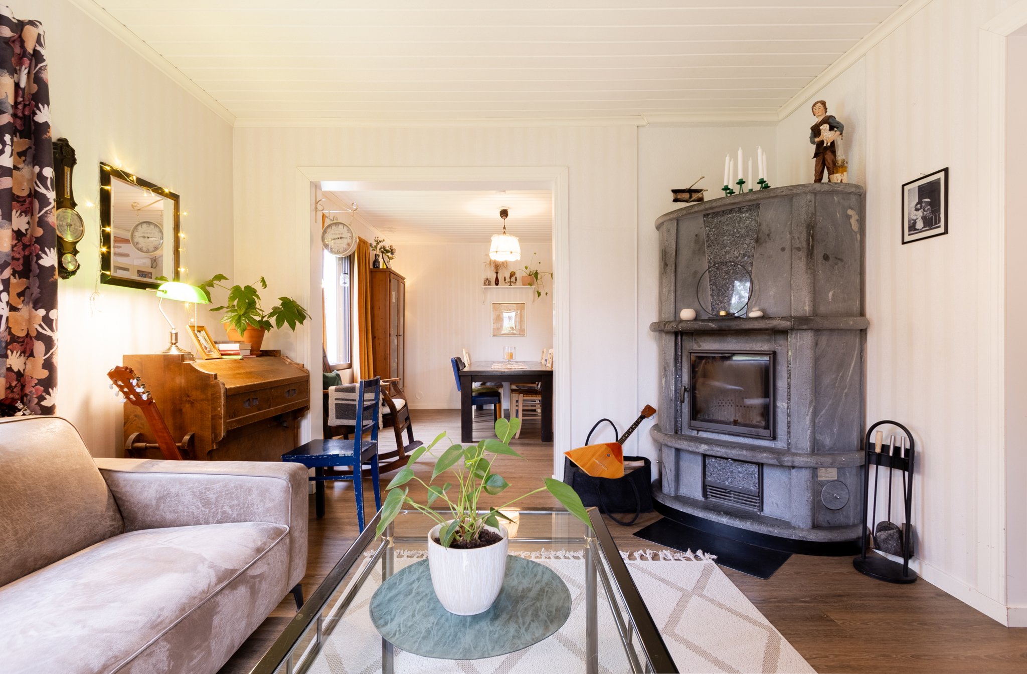Kodissa on lämpöä varaava takka, joka luo tunnelmaa olohuoneeseen. Keittiössä on ruuan valmistukseen ja lämmön lähteenä puuhella.