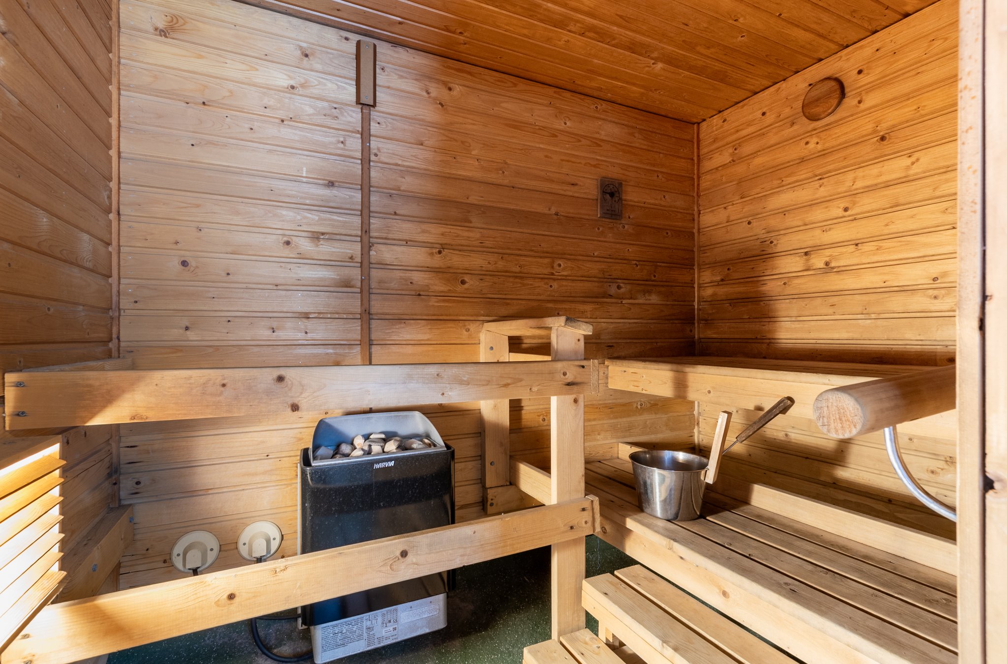 Päärakennus on kahdessa kerroksessa. Alakerrasta löytyy keittiö, olohuone, ruokailihuone sekä pesuhuone ja sauna. Yläkerrasta löytyy kaksi makuuhuonetta.