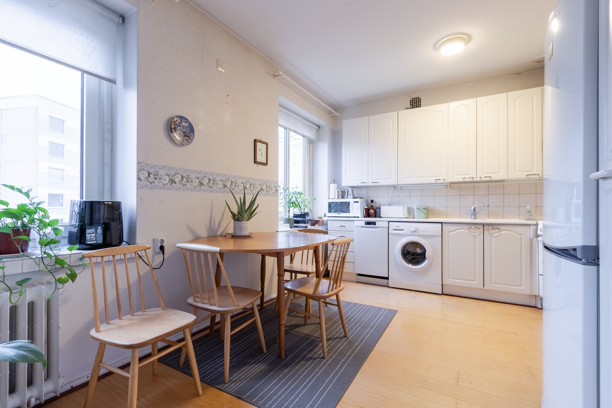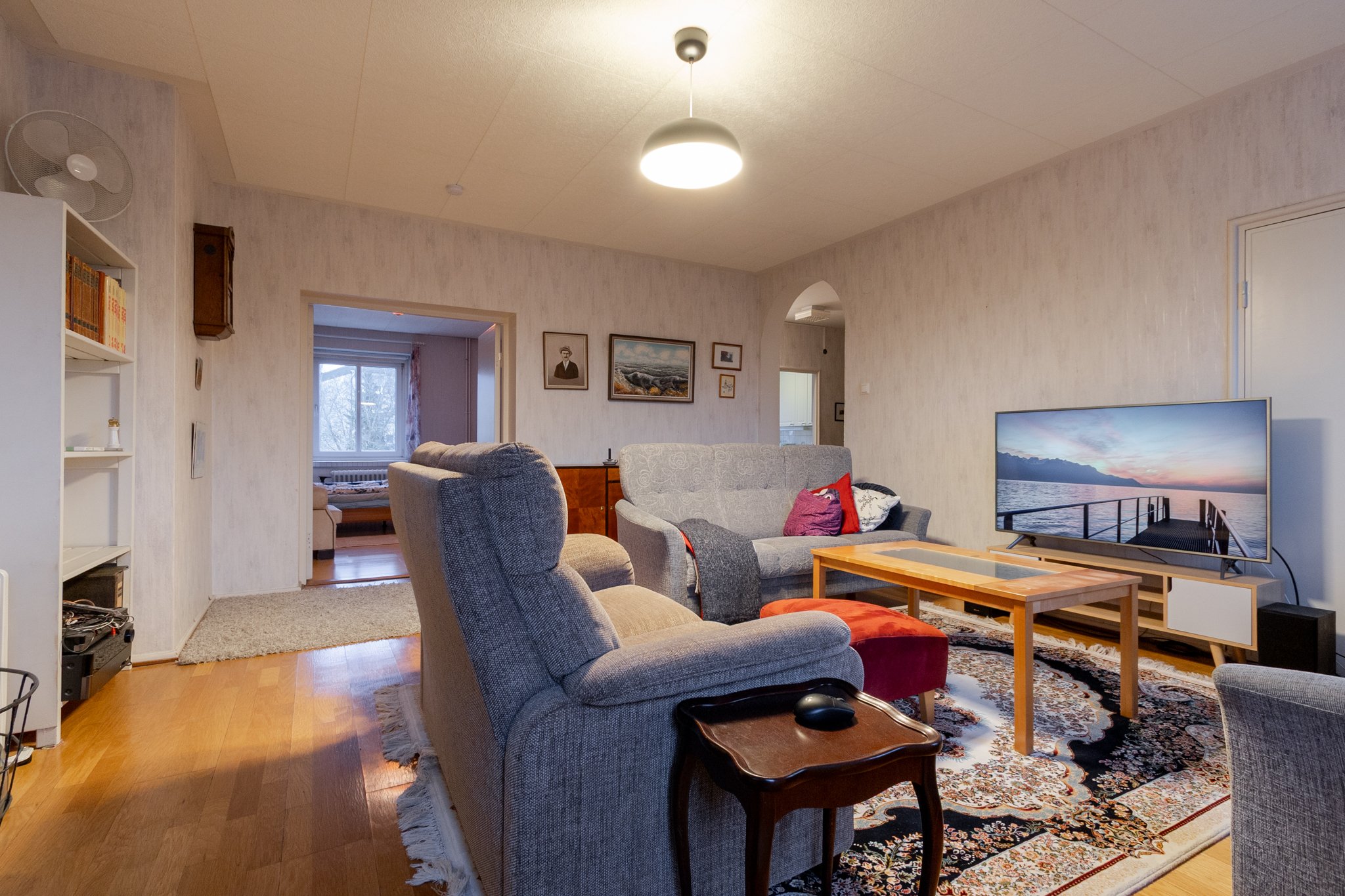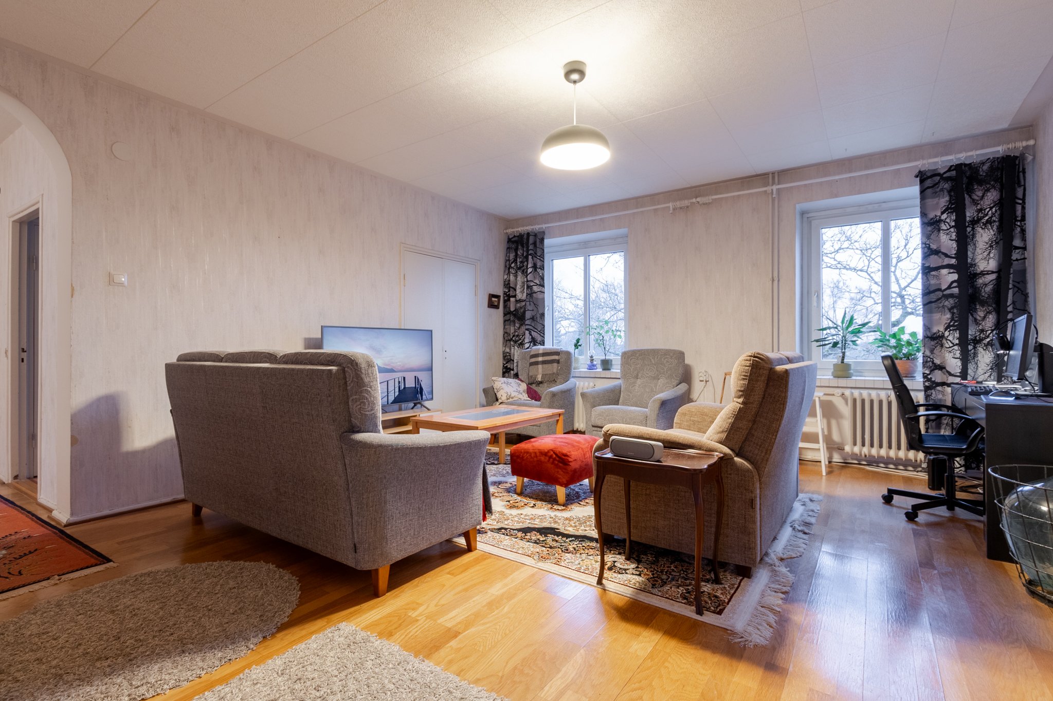Asunnon olohuone on reilunkokoinen, ja tilaan saat suunniteltua oman rentoutumis paikan arjen keskellä. Keittiö on erillinen, ja keittiön yhteydessä on tila ruokailuryhmälle.