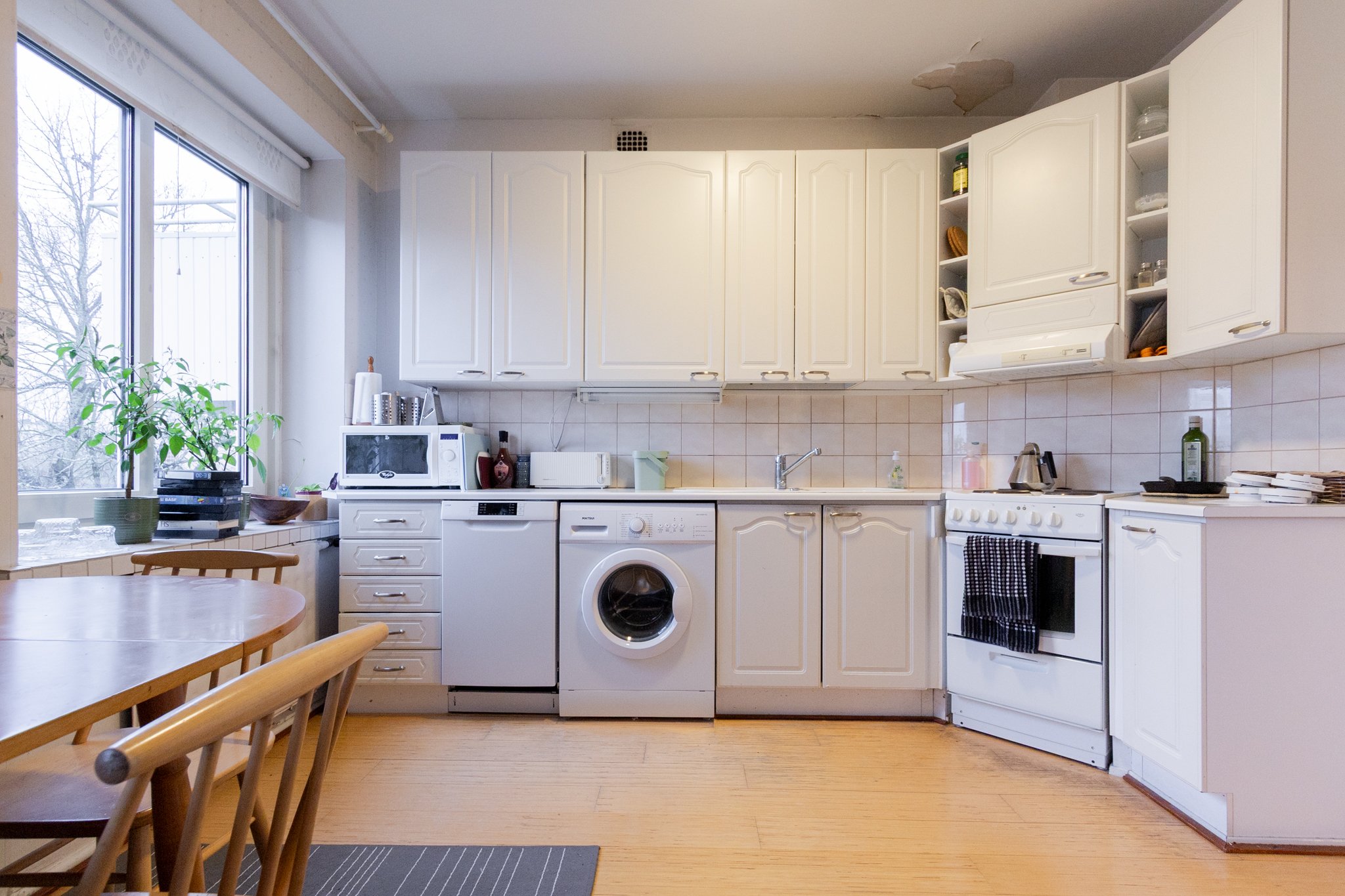 Varusteet: Jääkaappipakastin, liesi, liesituuletin, astianpesukone ja pesukoneliitäntä