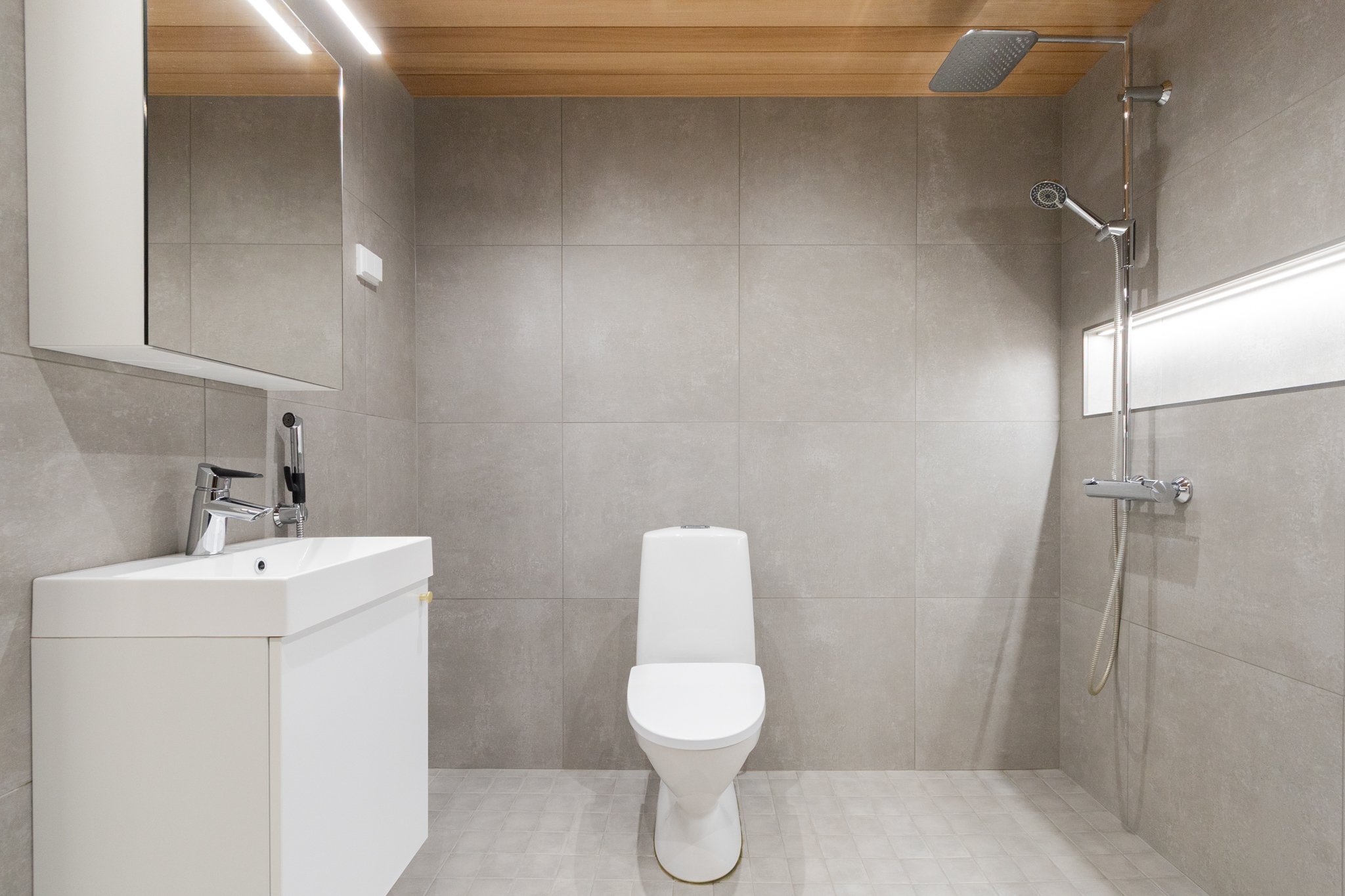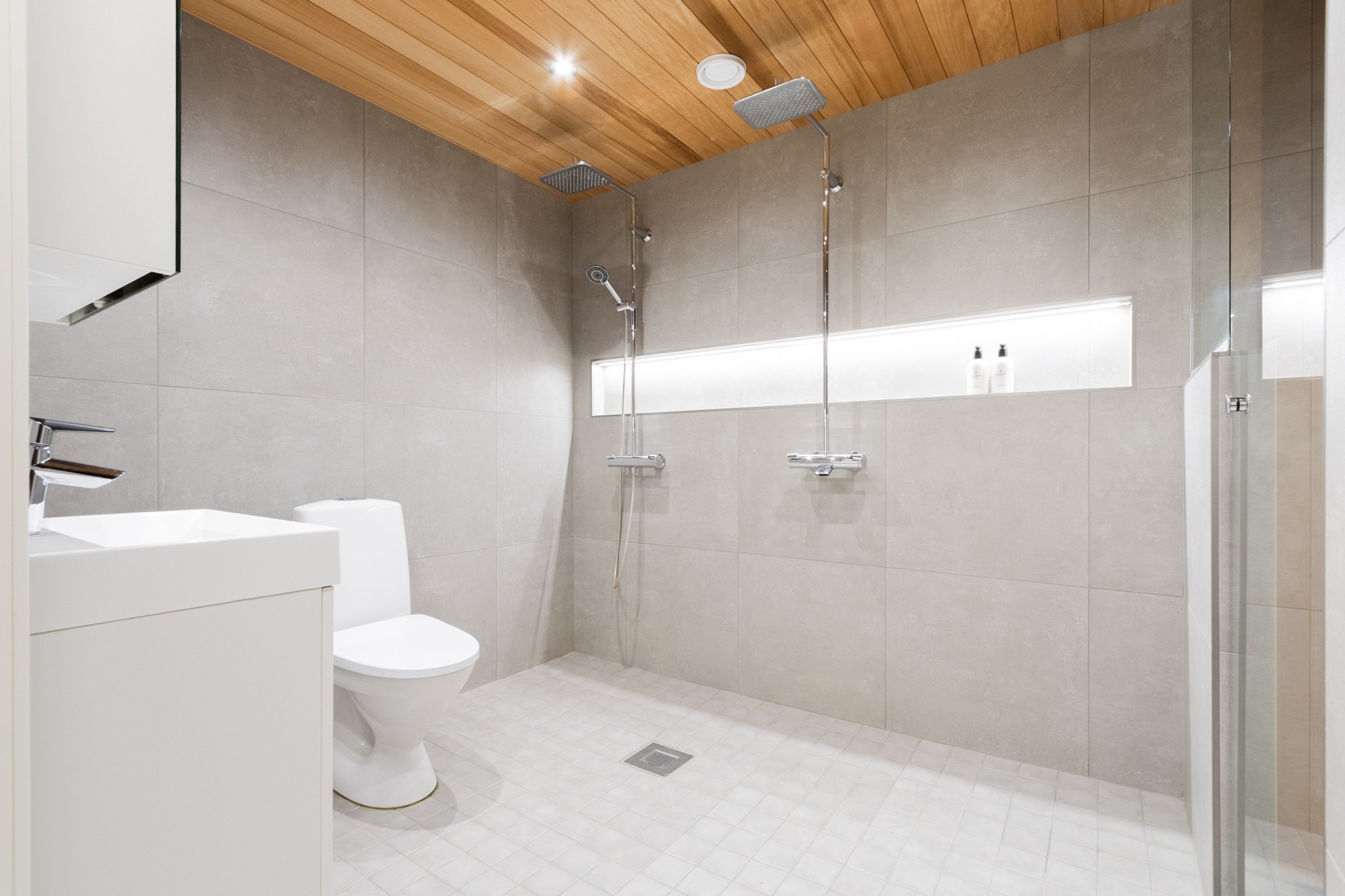 Varusteet: WC-istuin, suihku, lattialämmitys, allaskaappi ja peili