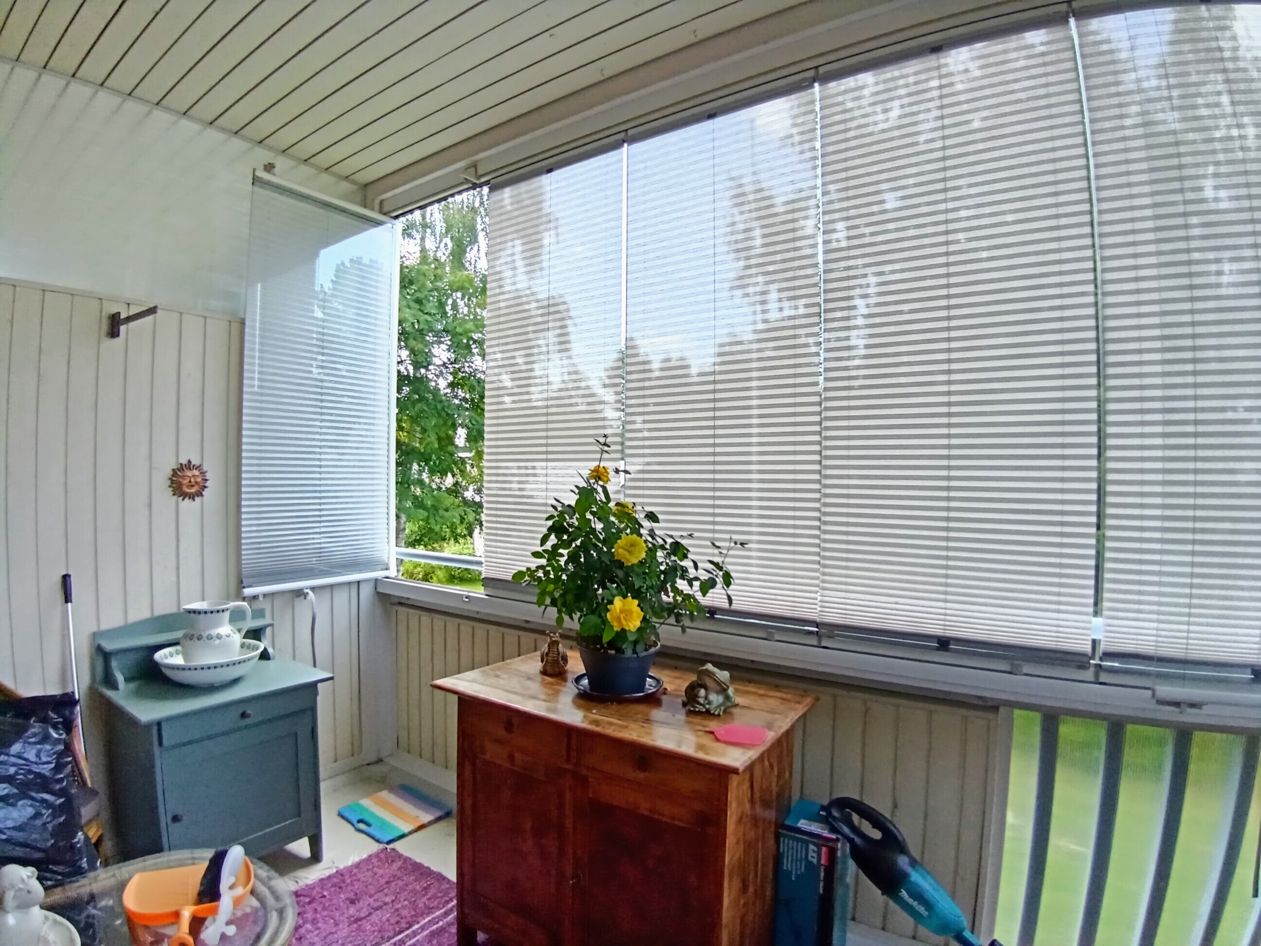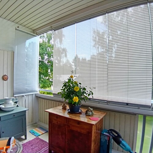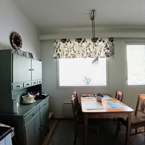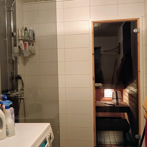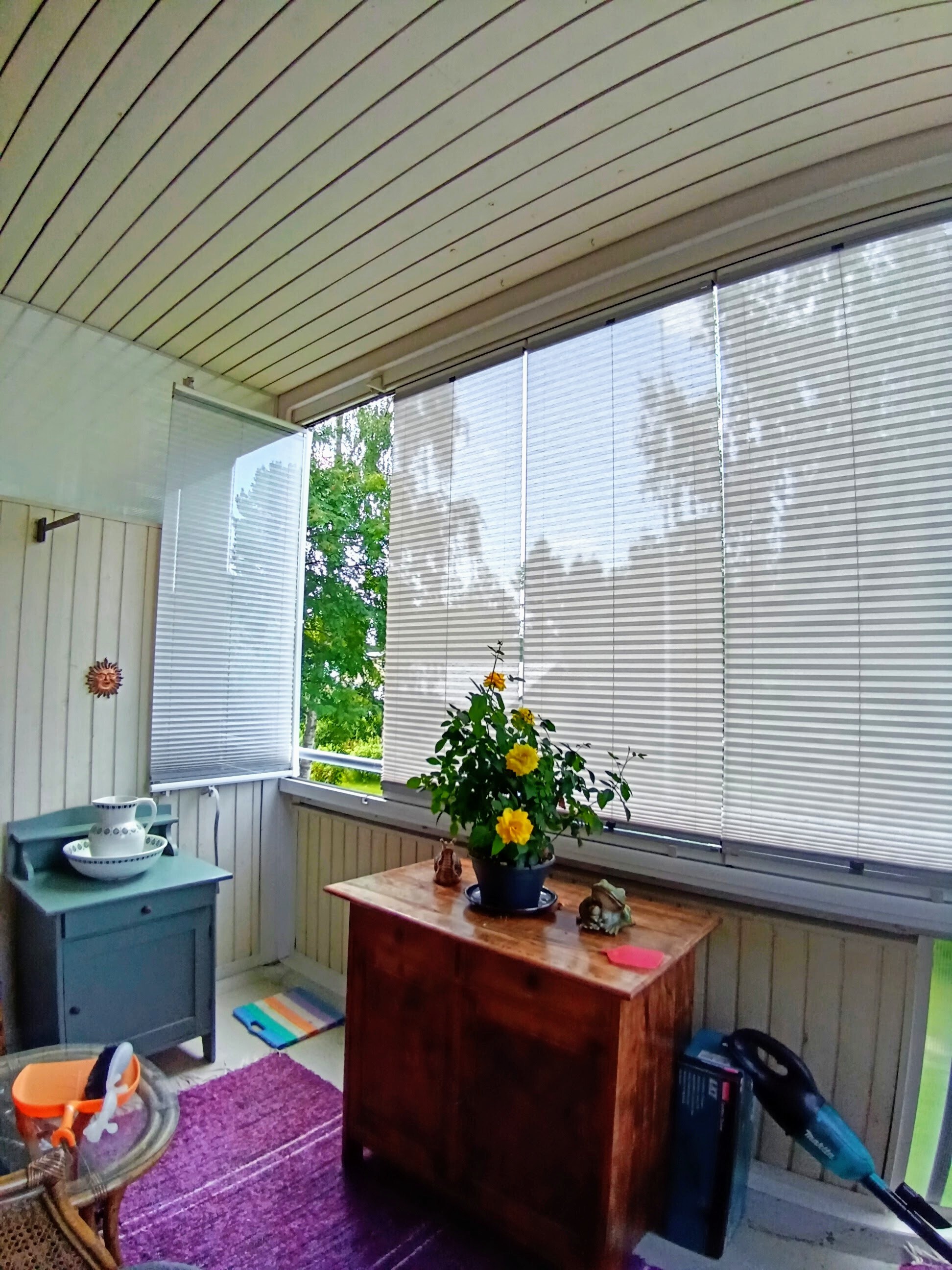 Pesutilat ja sauna on uudistettu. Parveke on lasitettu ja asennettu valoverhot.