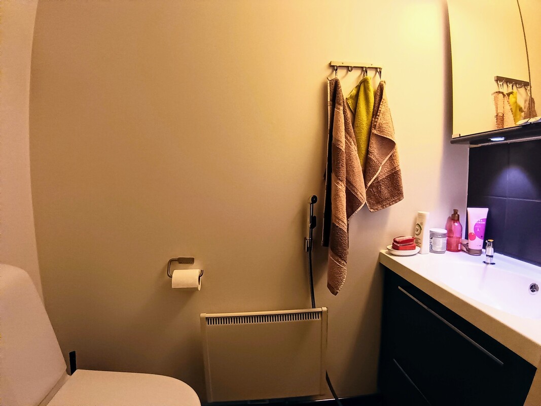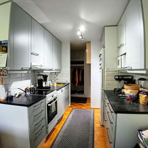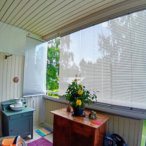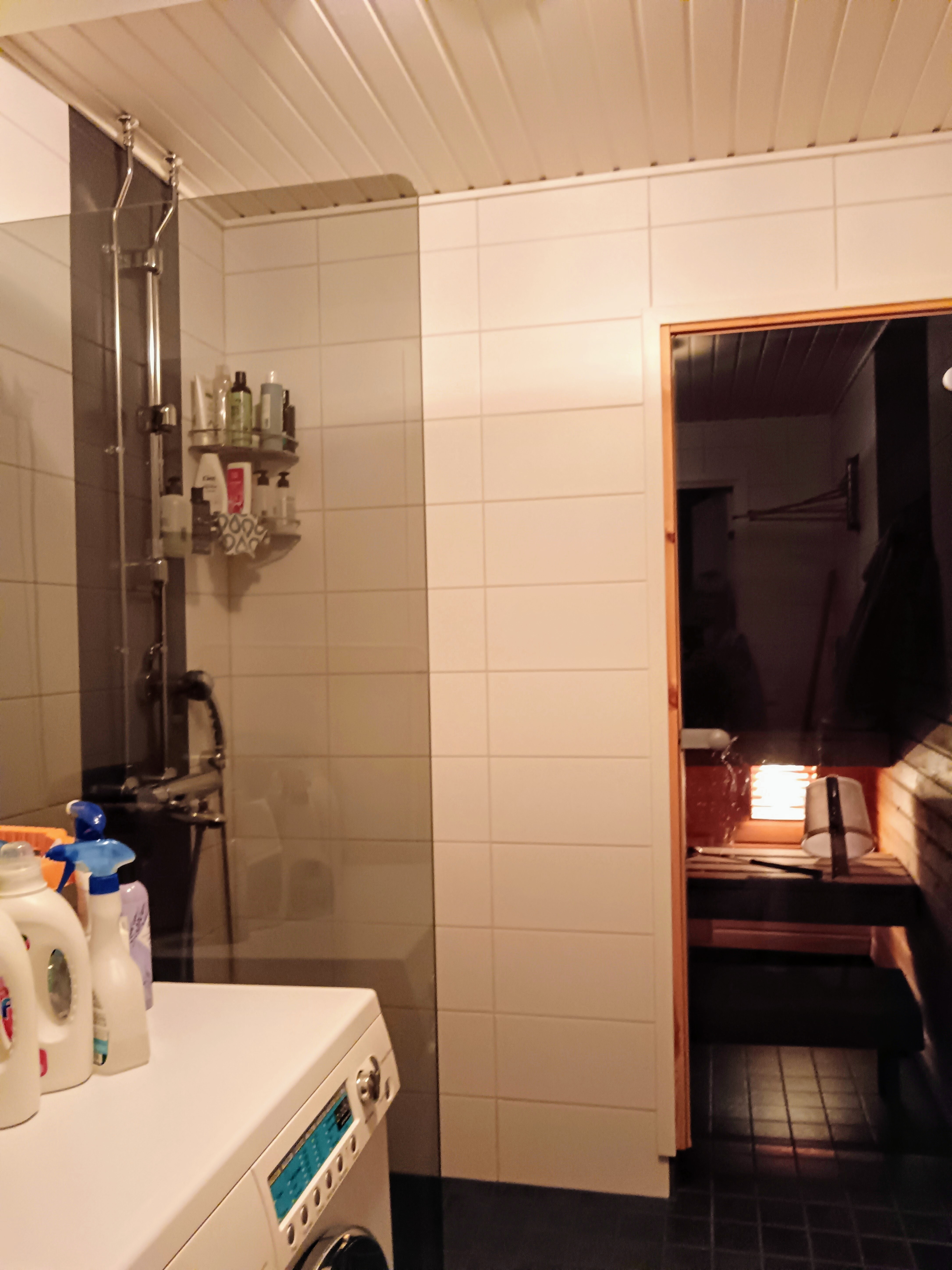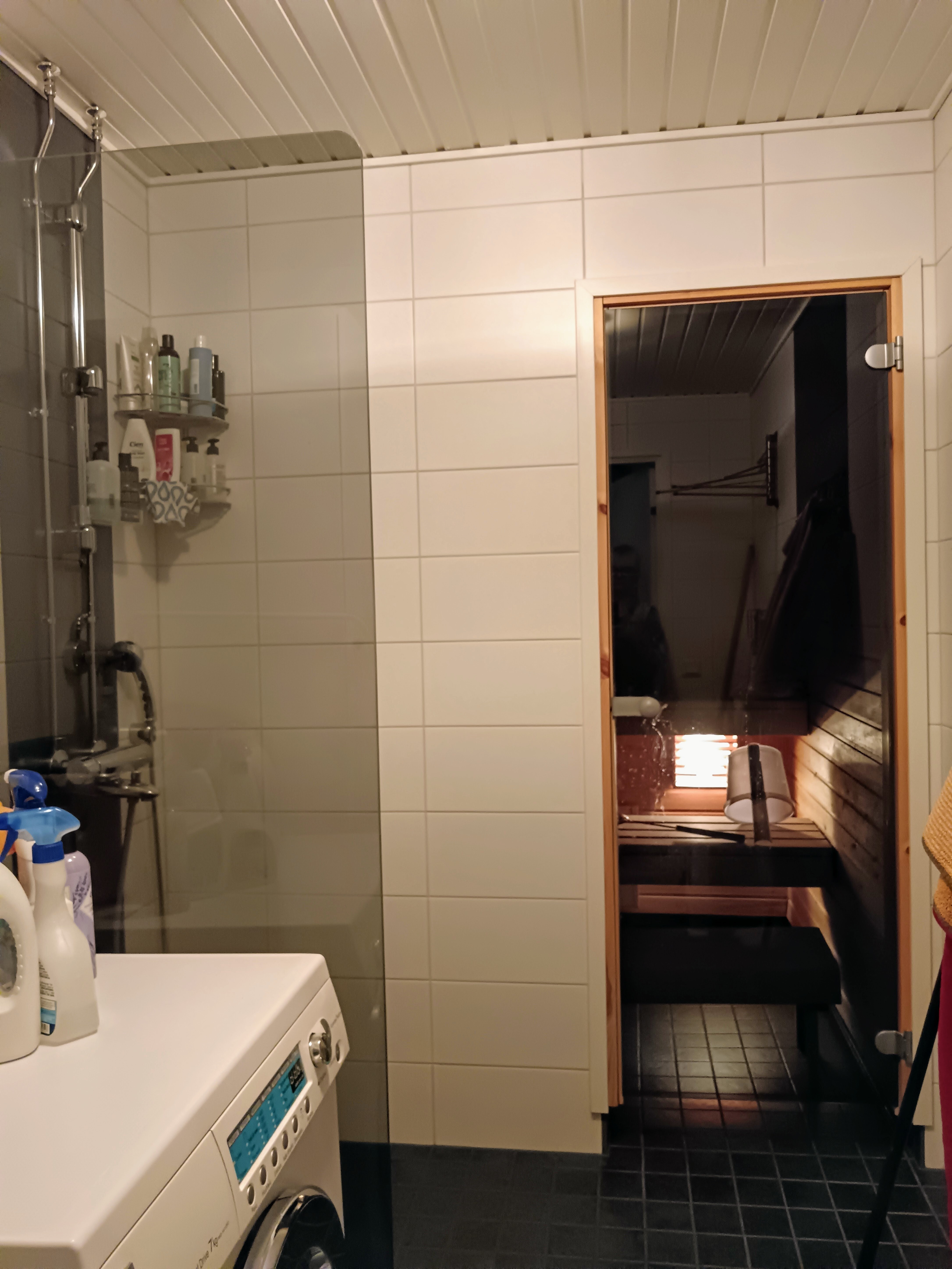 Pesutilat ja sauna on uudistettu. Parveke on lasitettu ja asennettu valoverhot.