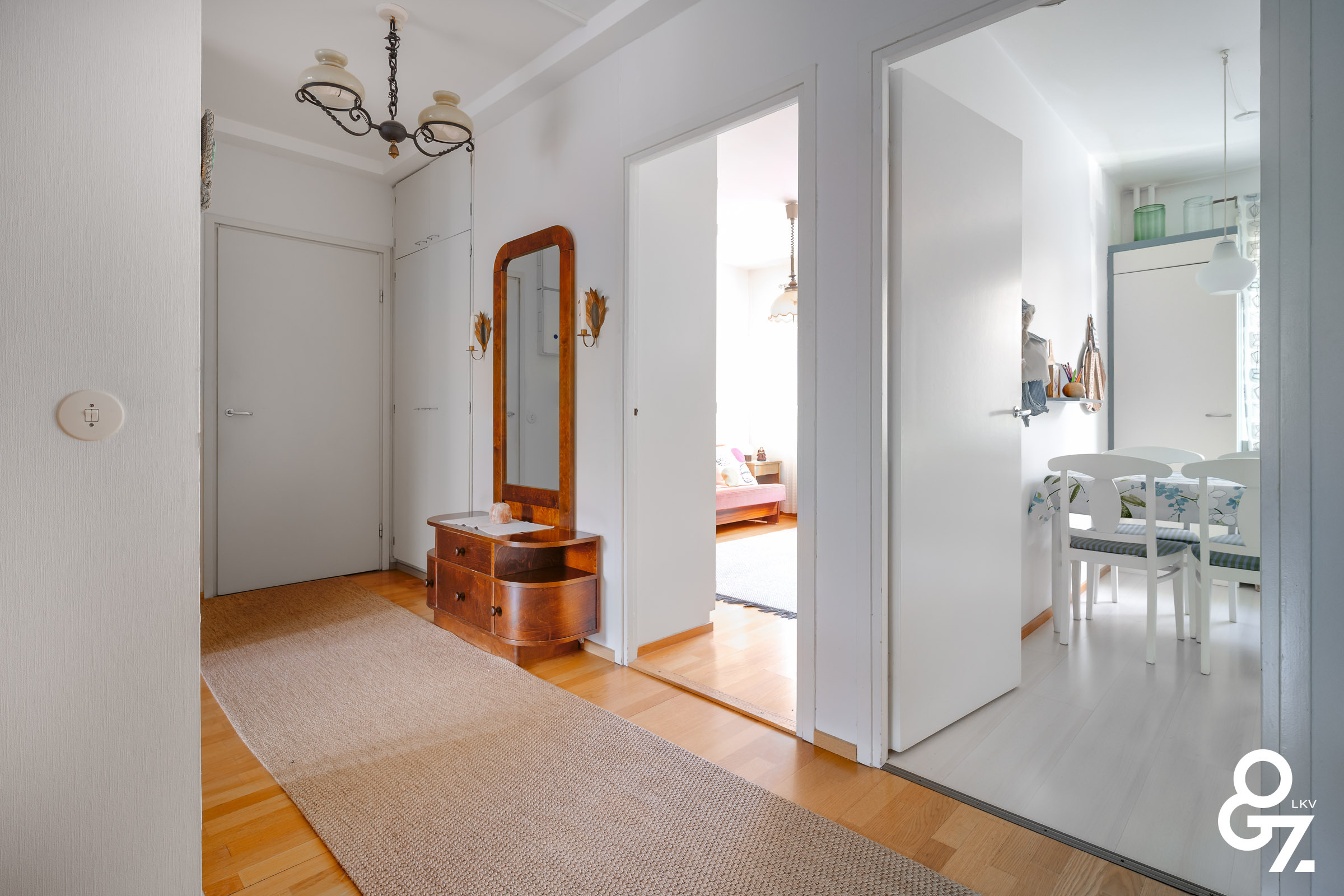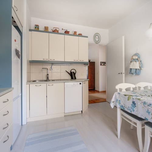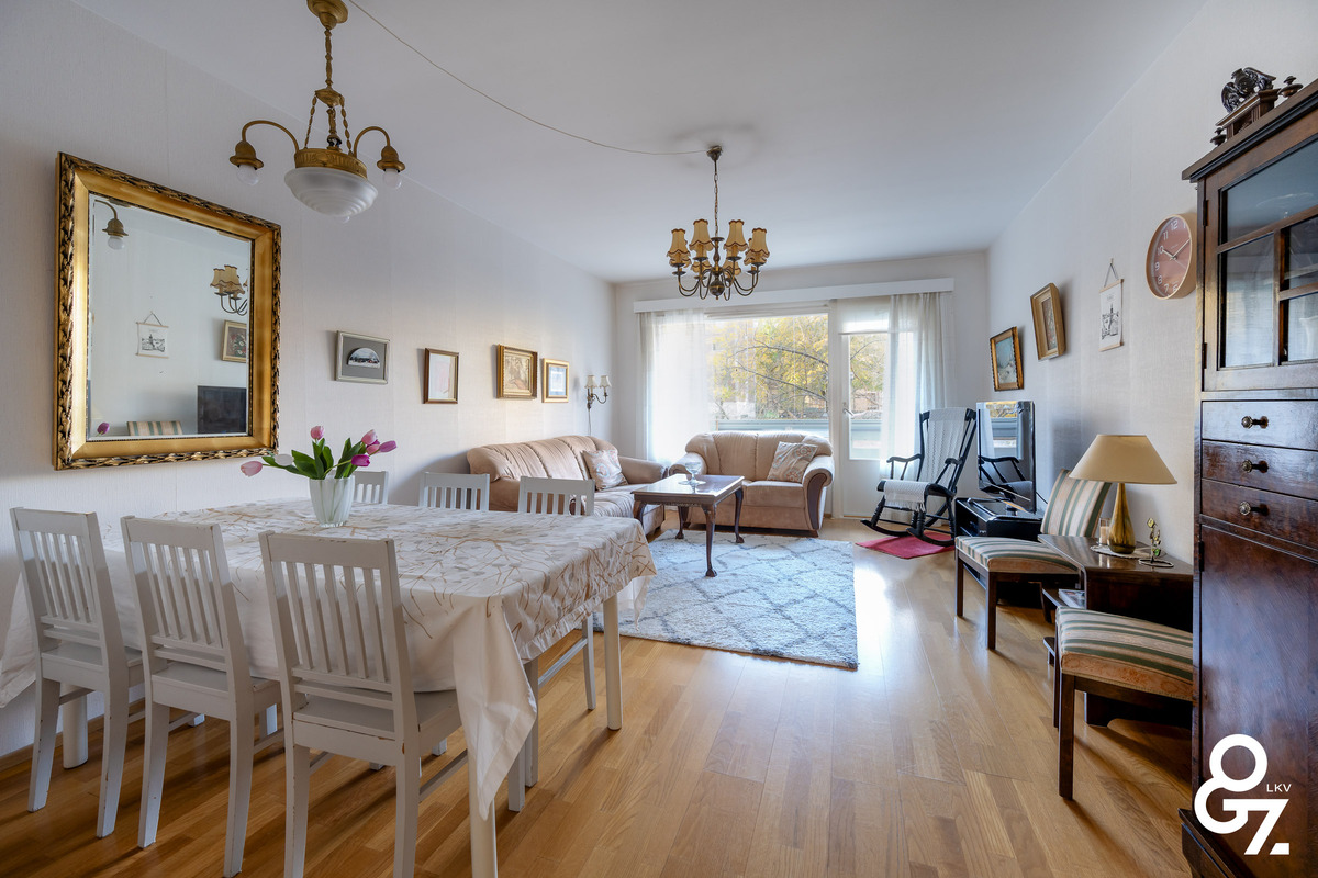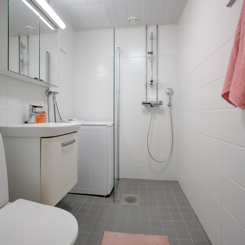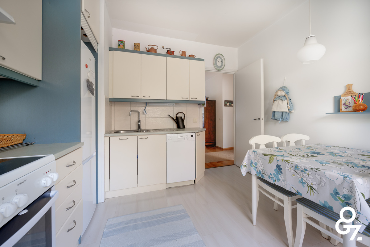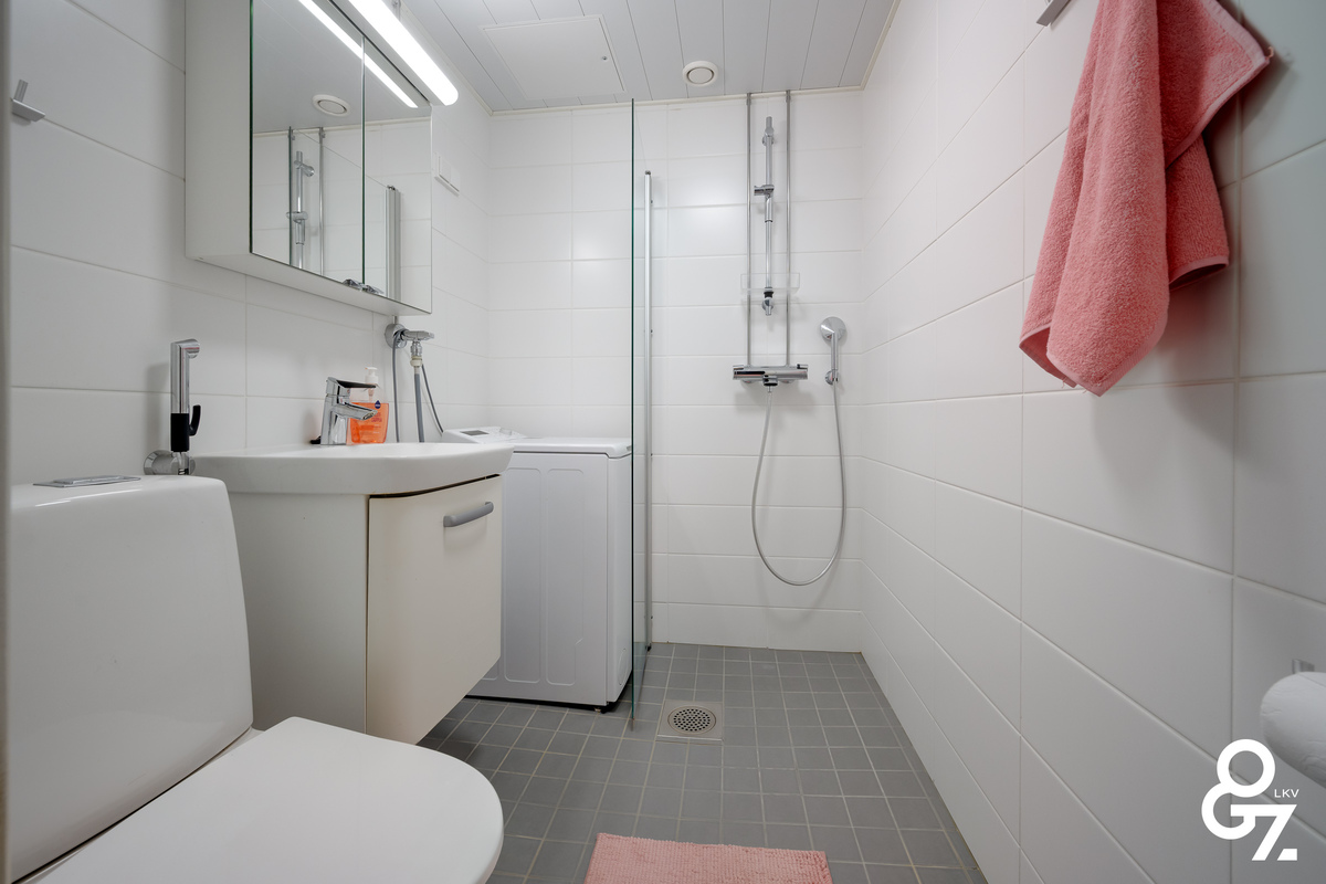 Säilytystilaa on mukavasti, huonekohtaissten kaappien lisäksi mm. vaatehuone on sijoitettu erittäin hyvin kummanakin mh läheisyyteen. Asuntoon kuulu myös kellarikerroksessa viilennetty kellarikomero ja reilun kokoinen vintin häkkikomero. Taloyhtiön kellarikerroksessa on pesutupa, mankeli- ja kuivatushuone sekä linjasaneerauksen yhteydessä perusteellisesti kunnostetut saunatilat.
