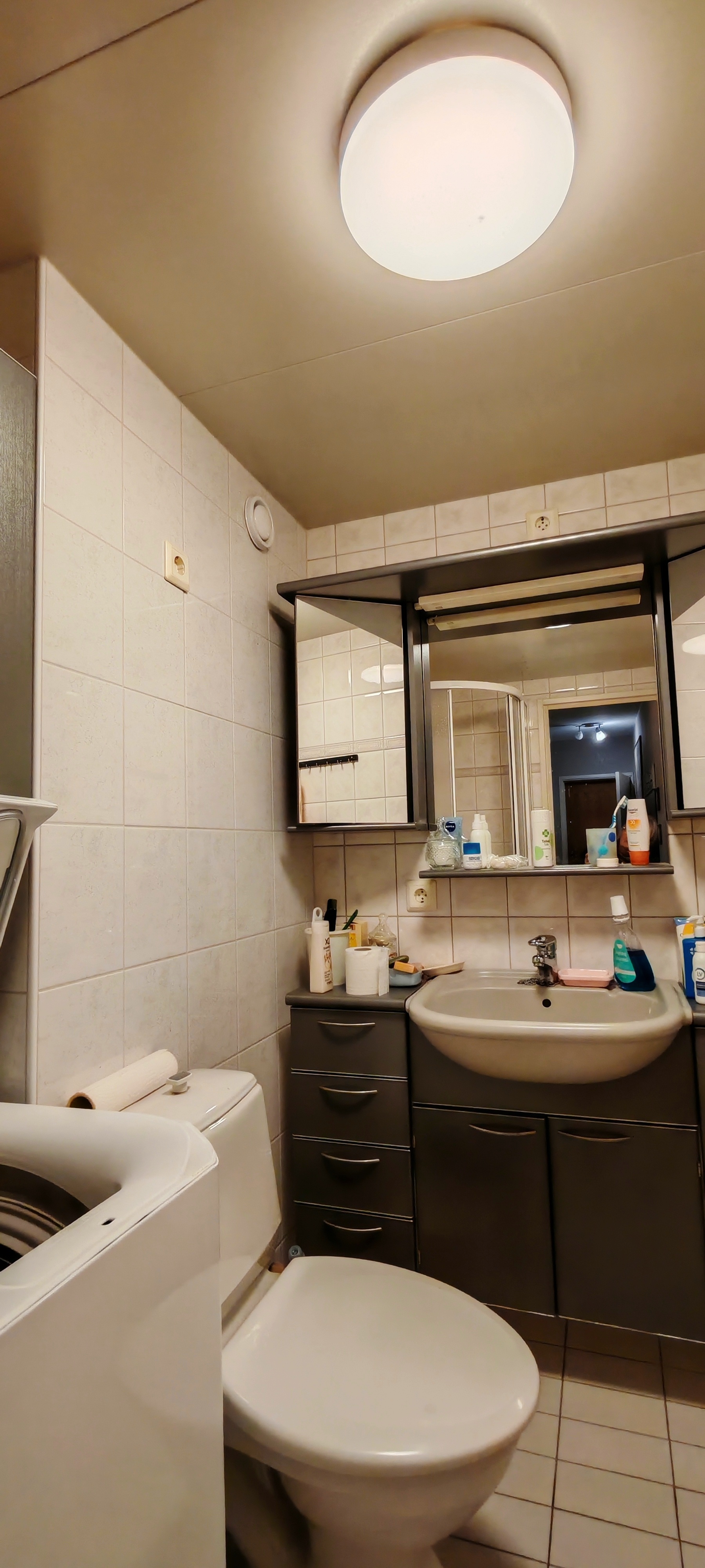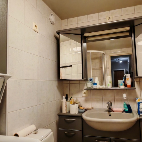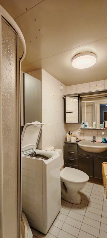 Varusteet: suihkukaappi, pesukoneliitäntä, lattialämmitys, wc-istuin, suihku, peilikaappi, kiinteät valaisimet, kylpyhuonekaapisto, asennettuja erikoisvarusteita