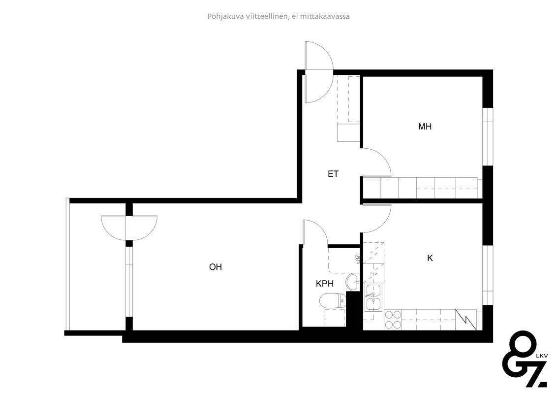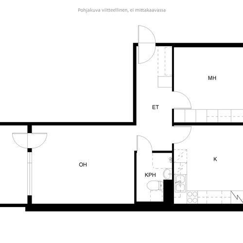 Kaksi huonetta + keittiö, kolmas kerros