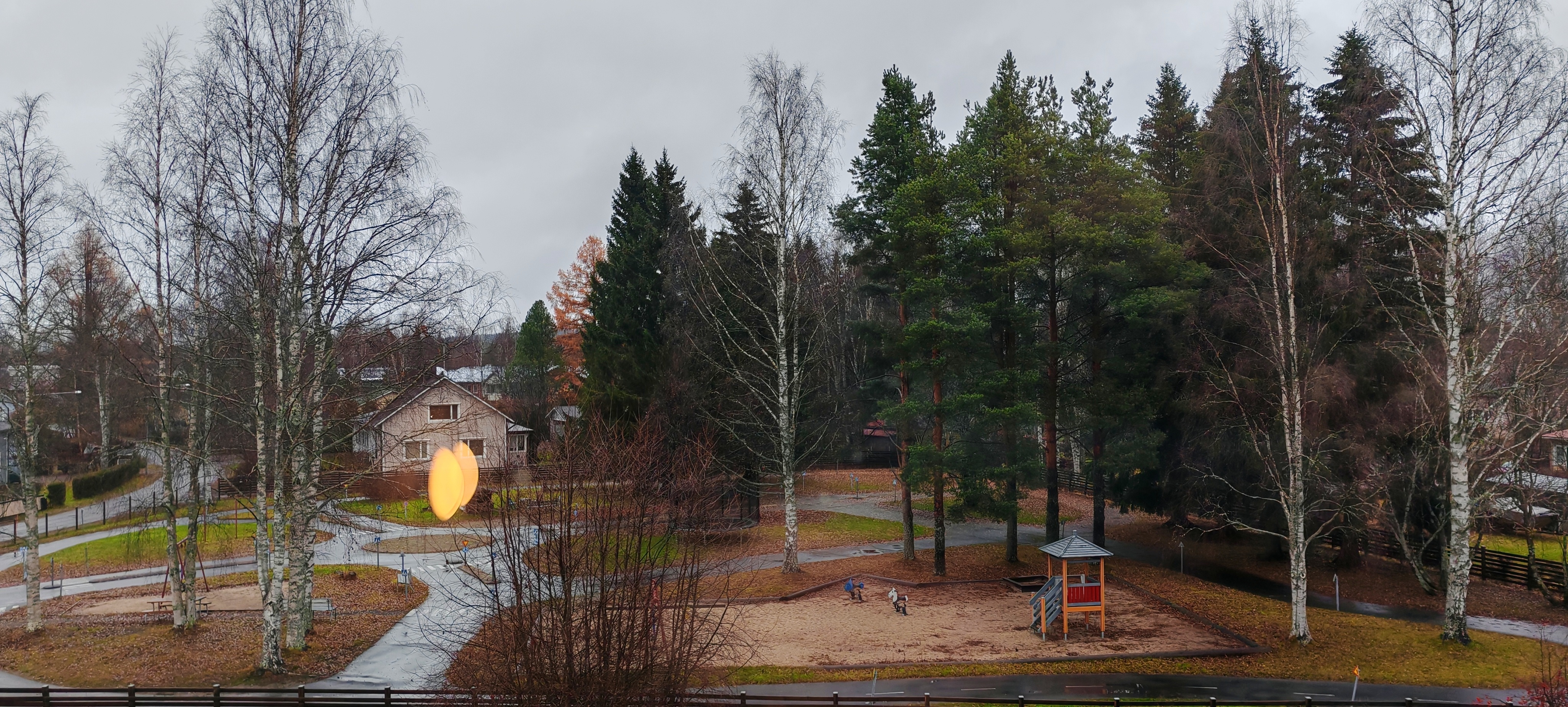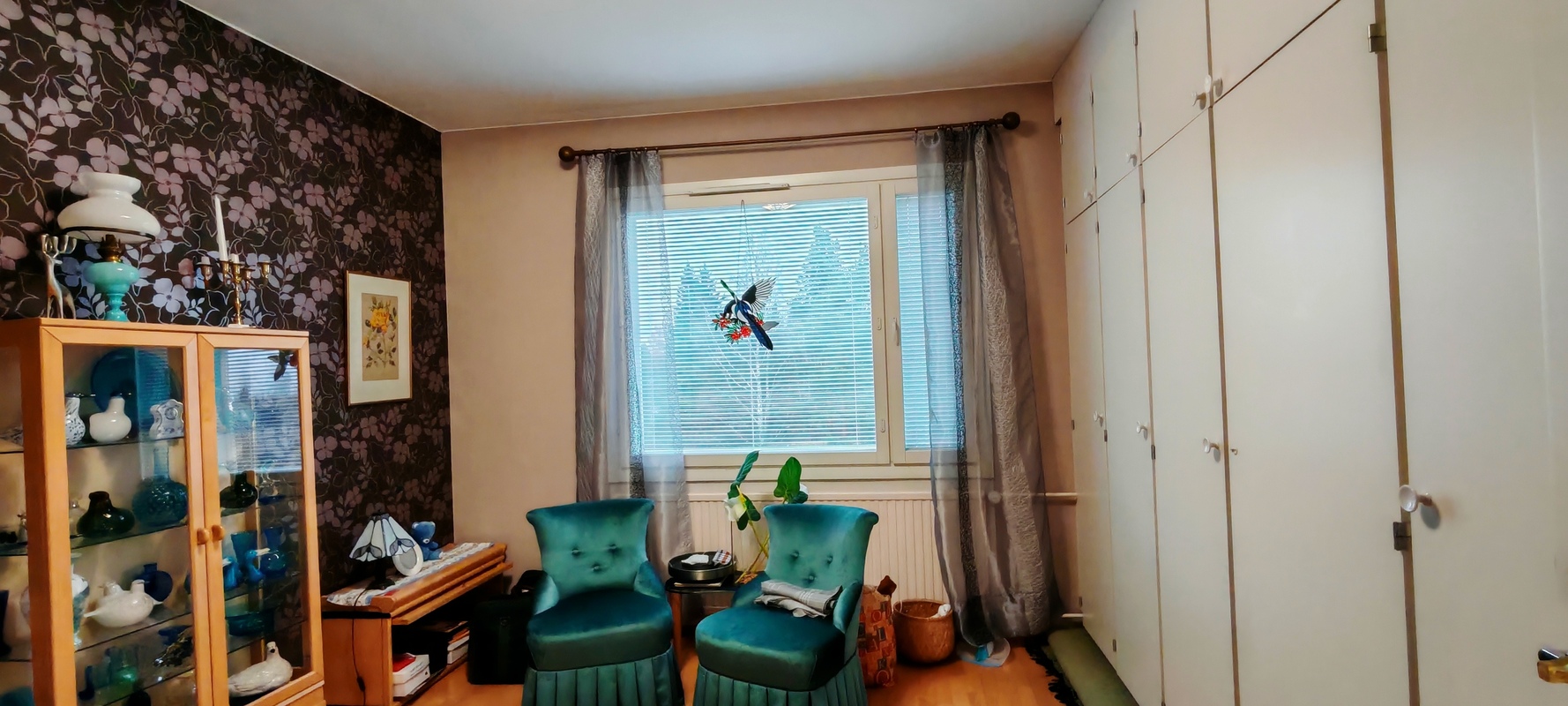 Ikkunasta upeat näymät puistoalueelle.