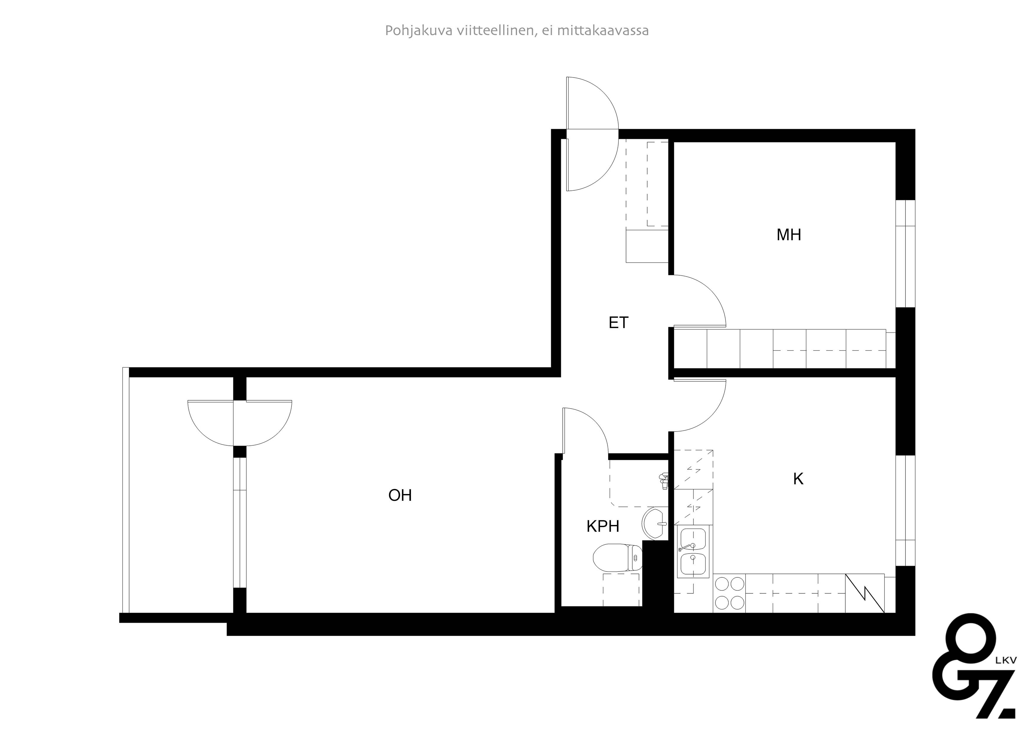 Huoneiston pinta-ala 55 m²