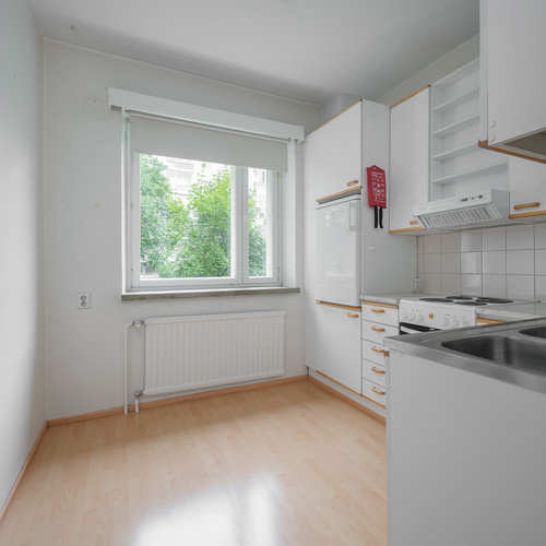 Rakennuksessa ovat suuret peruskorjaukset saatu päätökseen. Asunto sijaitsee pihanpuoleisessa rakennuksessa 1. asuinkerroksessa ( yhdet lyhyet rappuset ylös ja olet asunnolla).