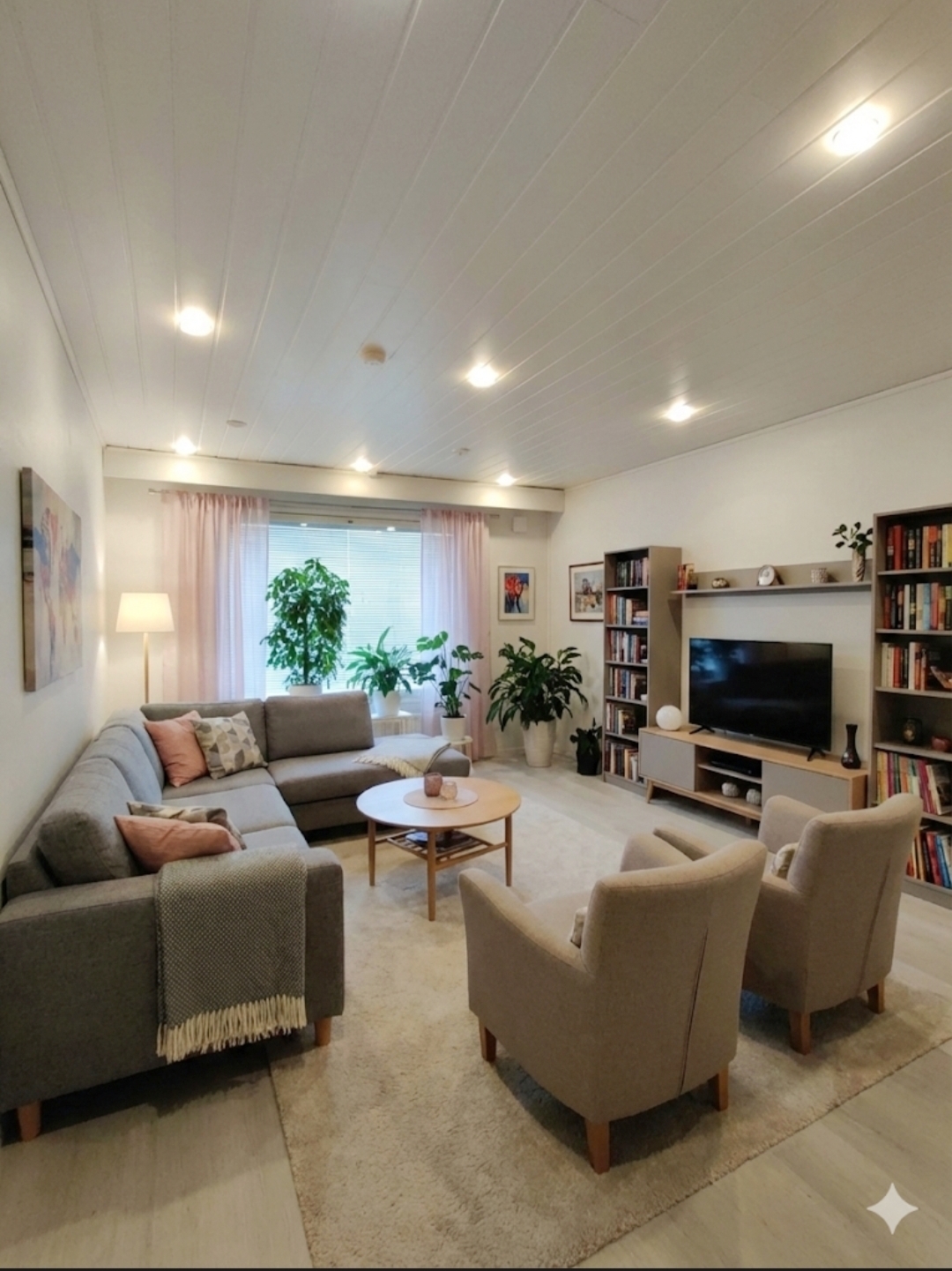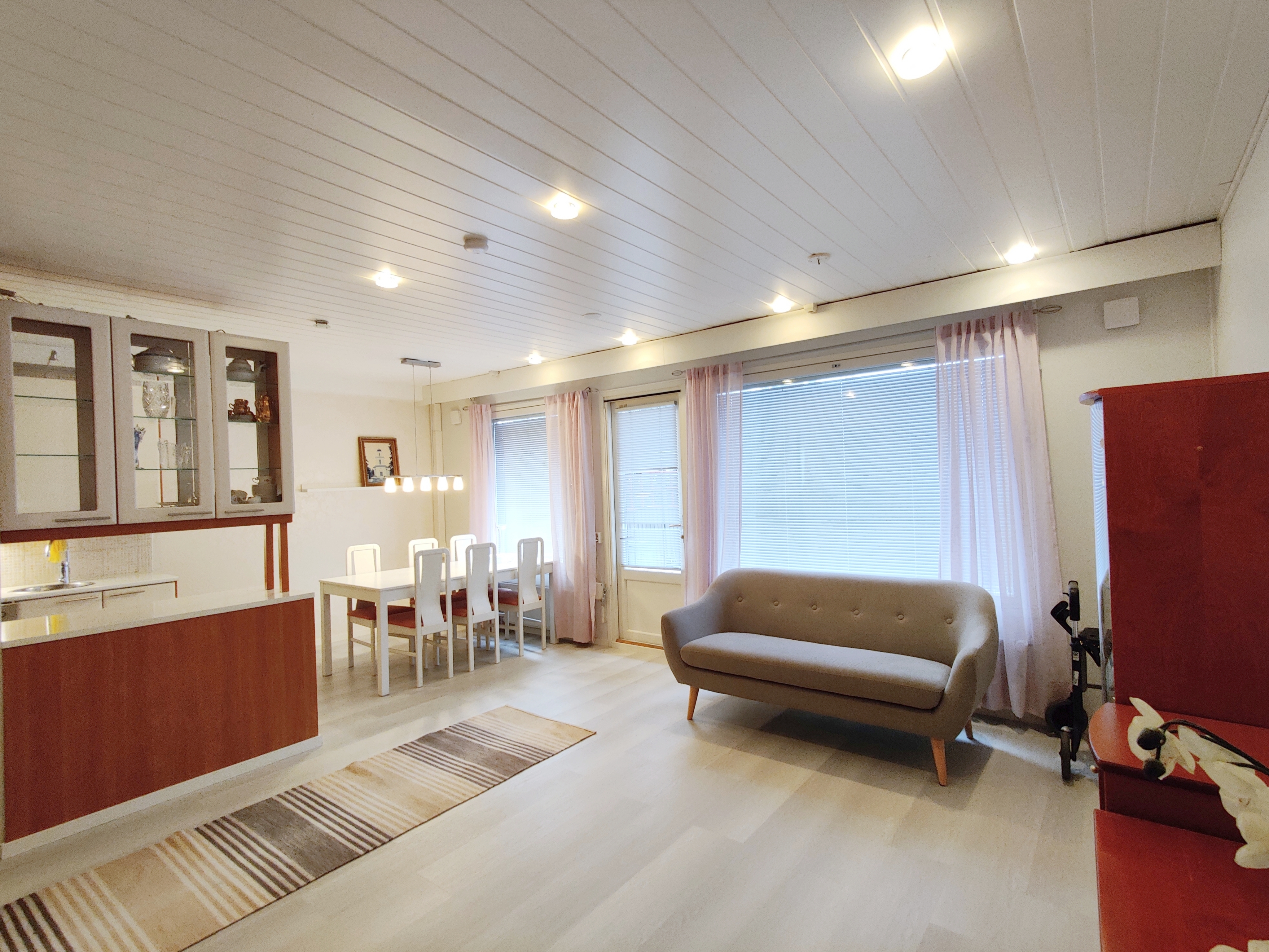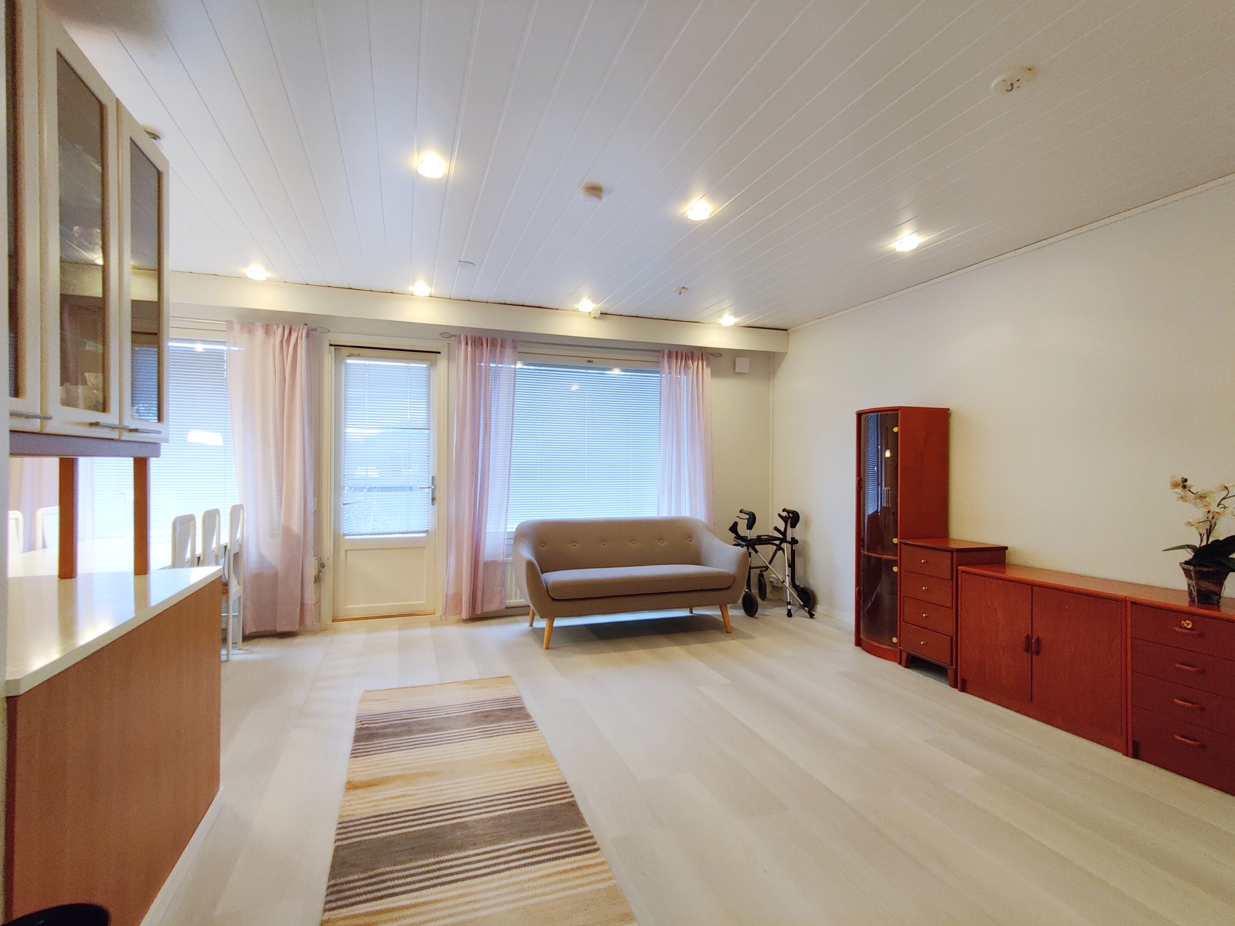 Varusteet: sälekaihtimet/rullaverhot, verhotangot, kiinteät valaisimet