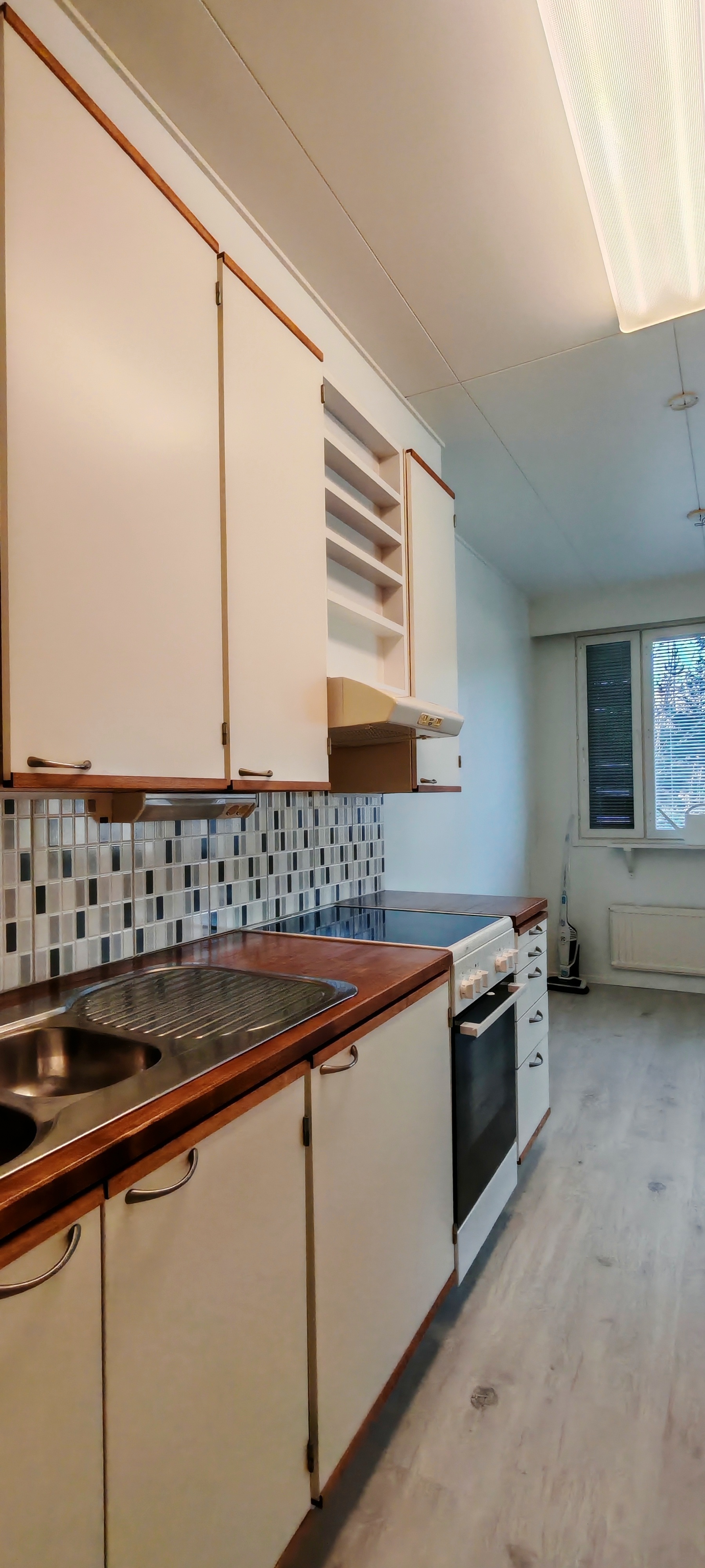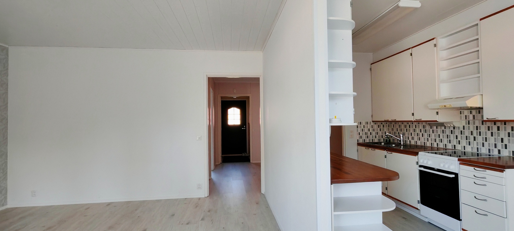 Eteinen avara, mahdollista lisätä kaapistoja 100 cm ja 120 cm levyinen.