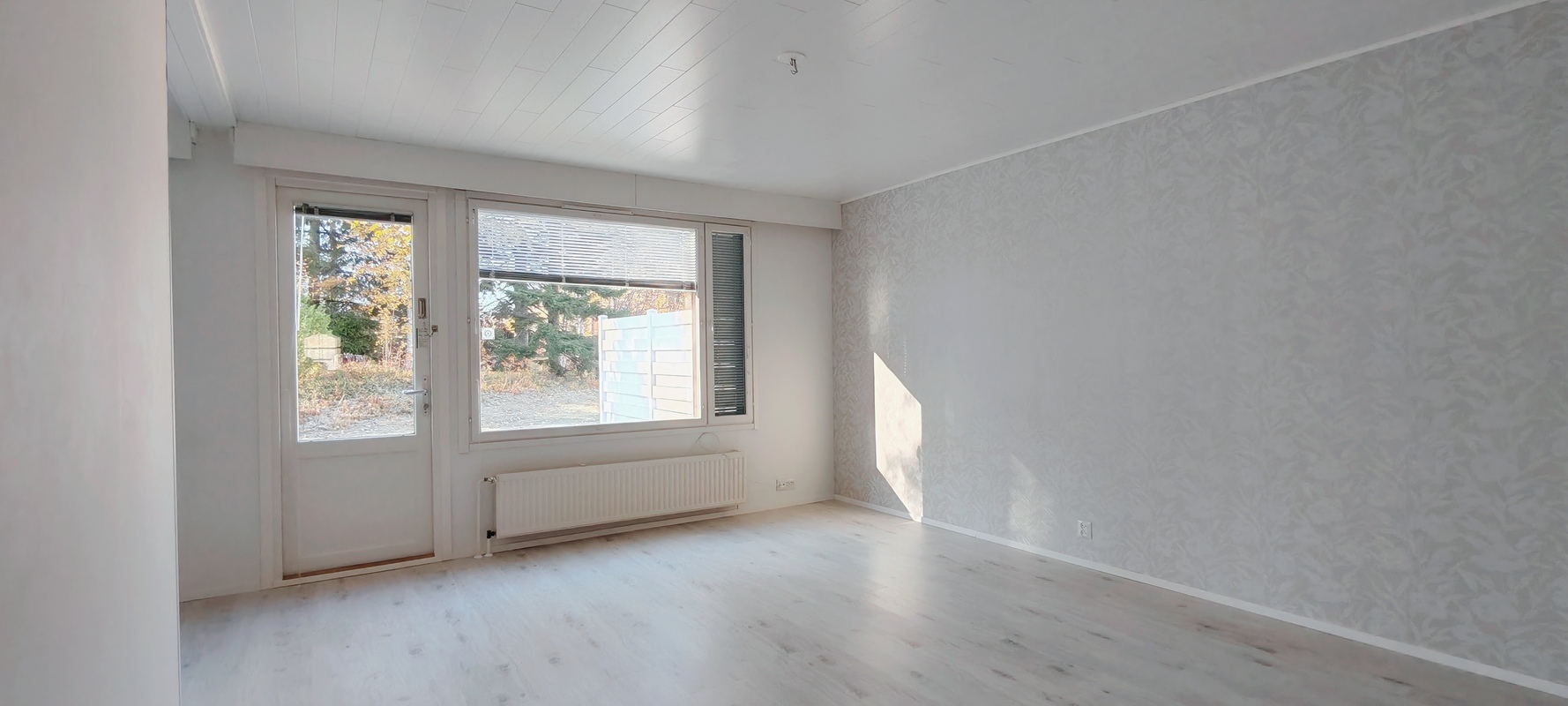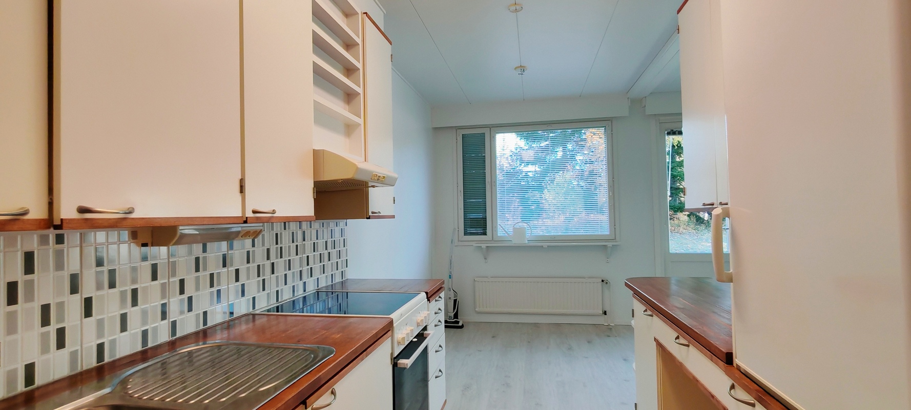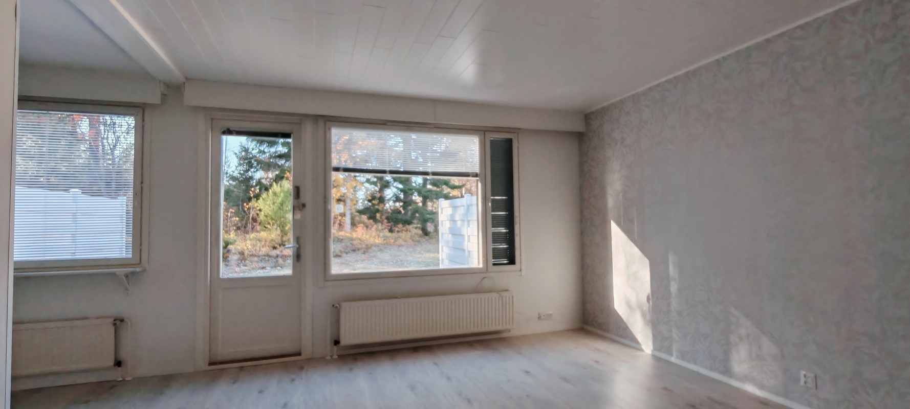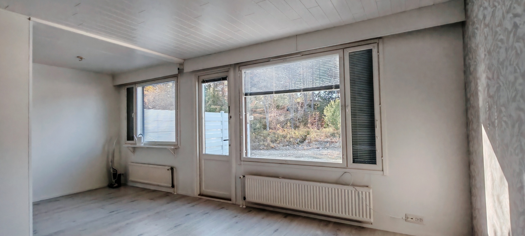 Varusteet: sälekaihtimet/rullaverhot, naulakko, pyykinpesukone