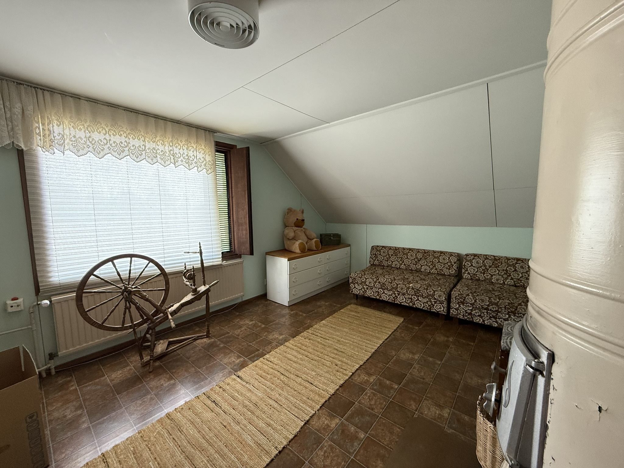 2024 Nuohottu, yläkerran huoneessa pönttöuuni.