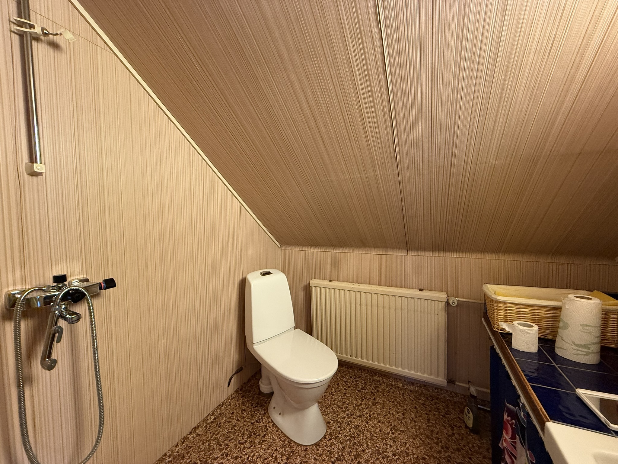 Varusteet: pesukoneliitäntä, lattiakaivo, bidee-suihku