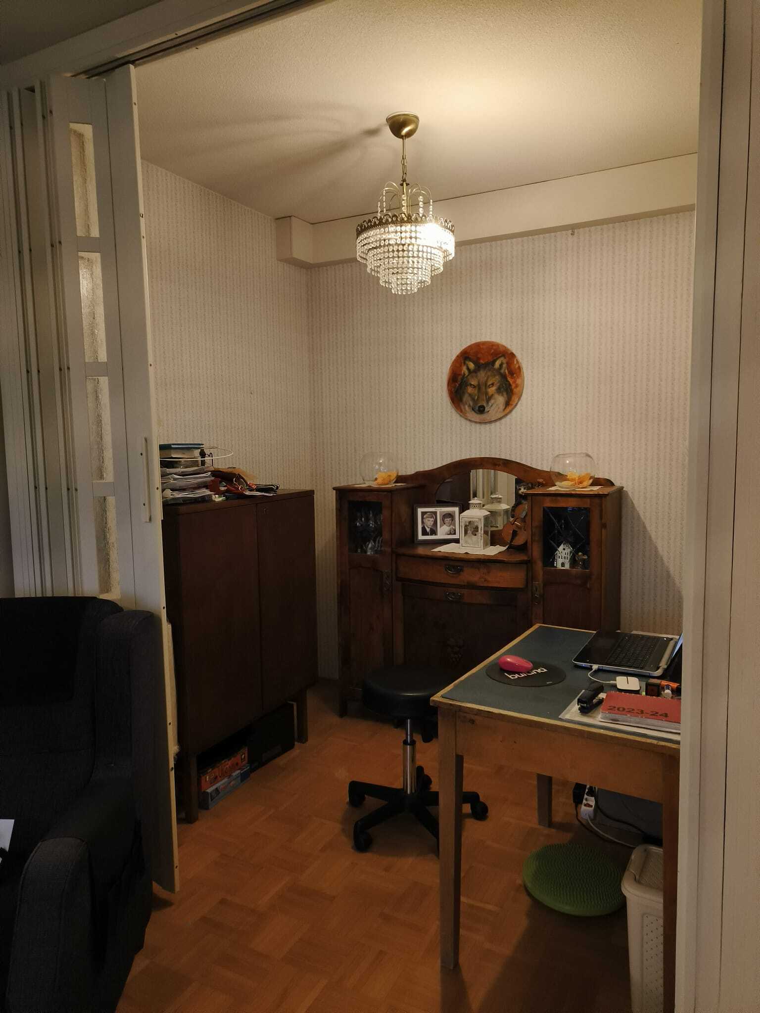 Haitariovi tilanjakajana työhuoneeseen.