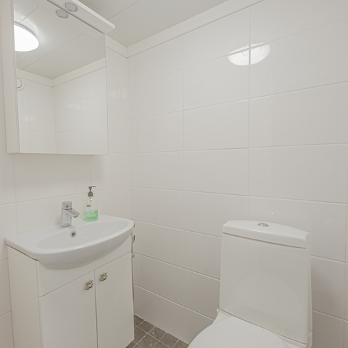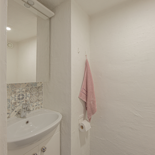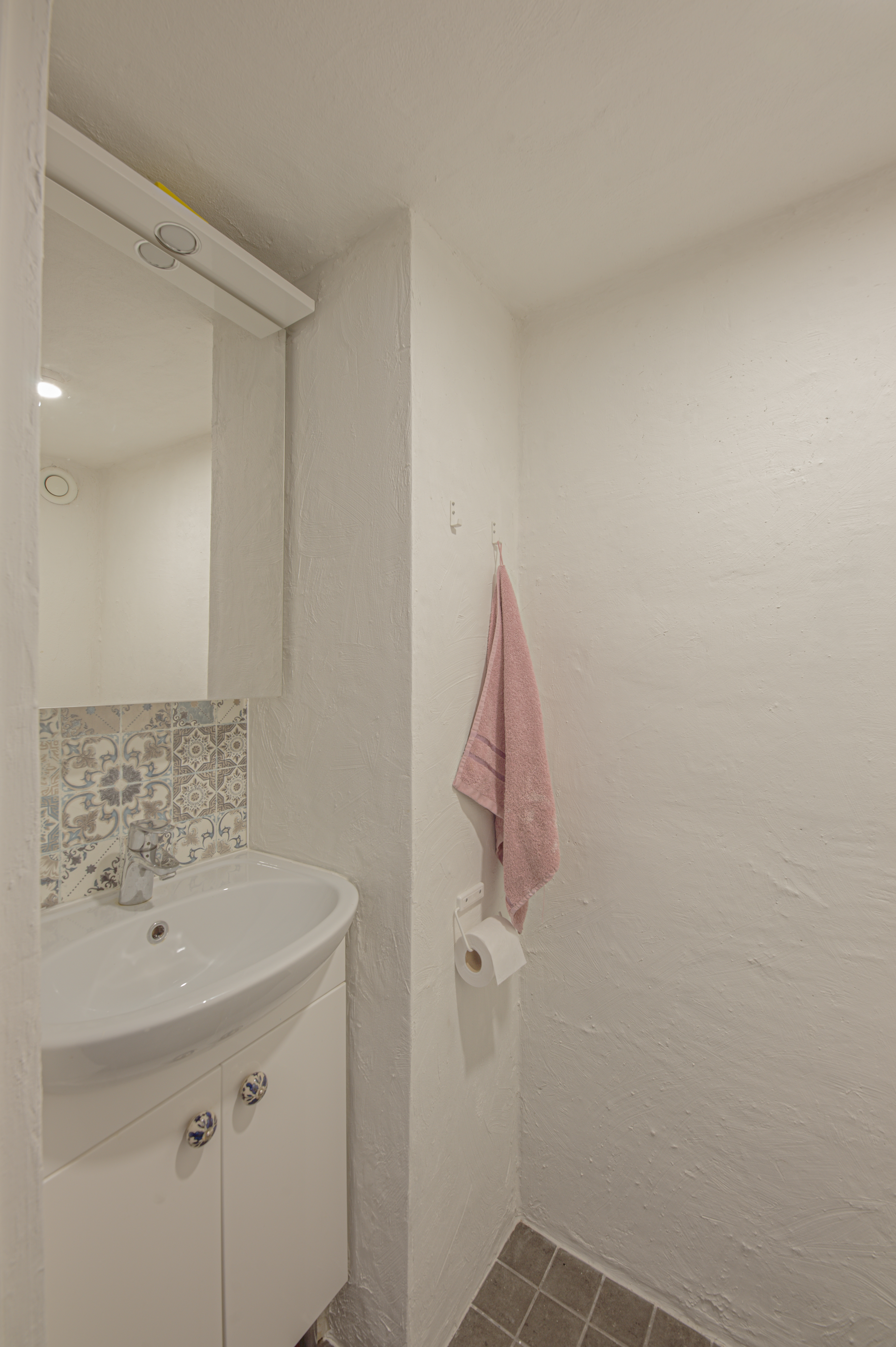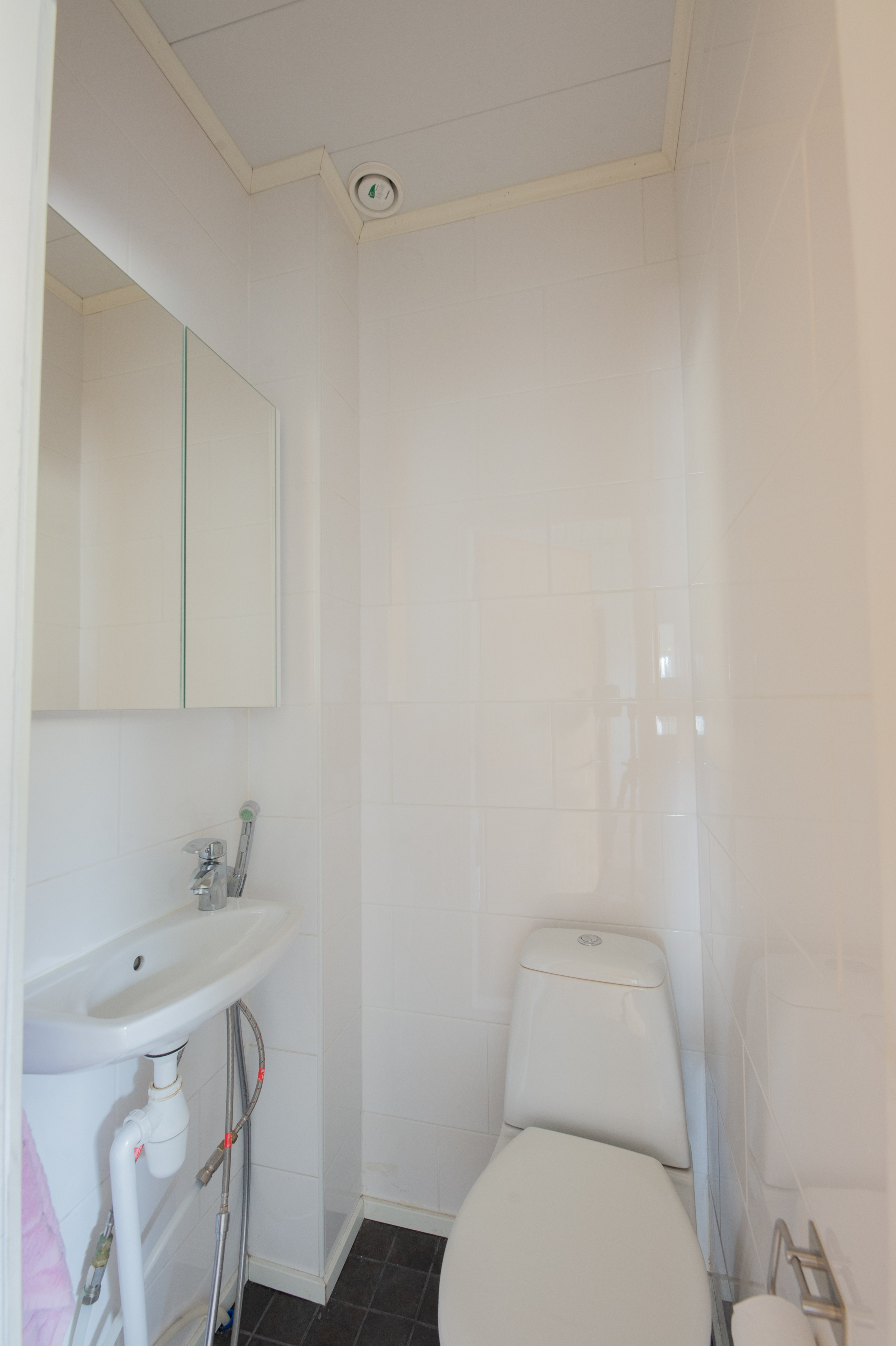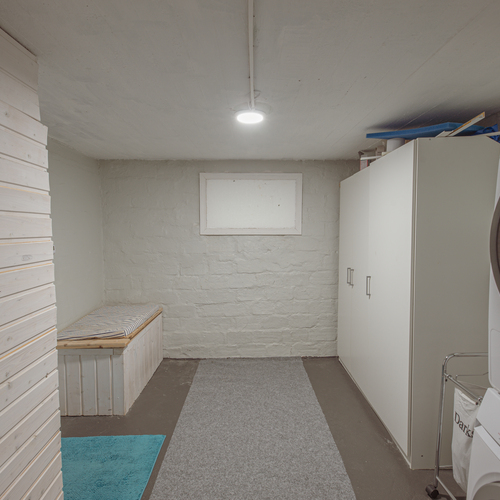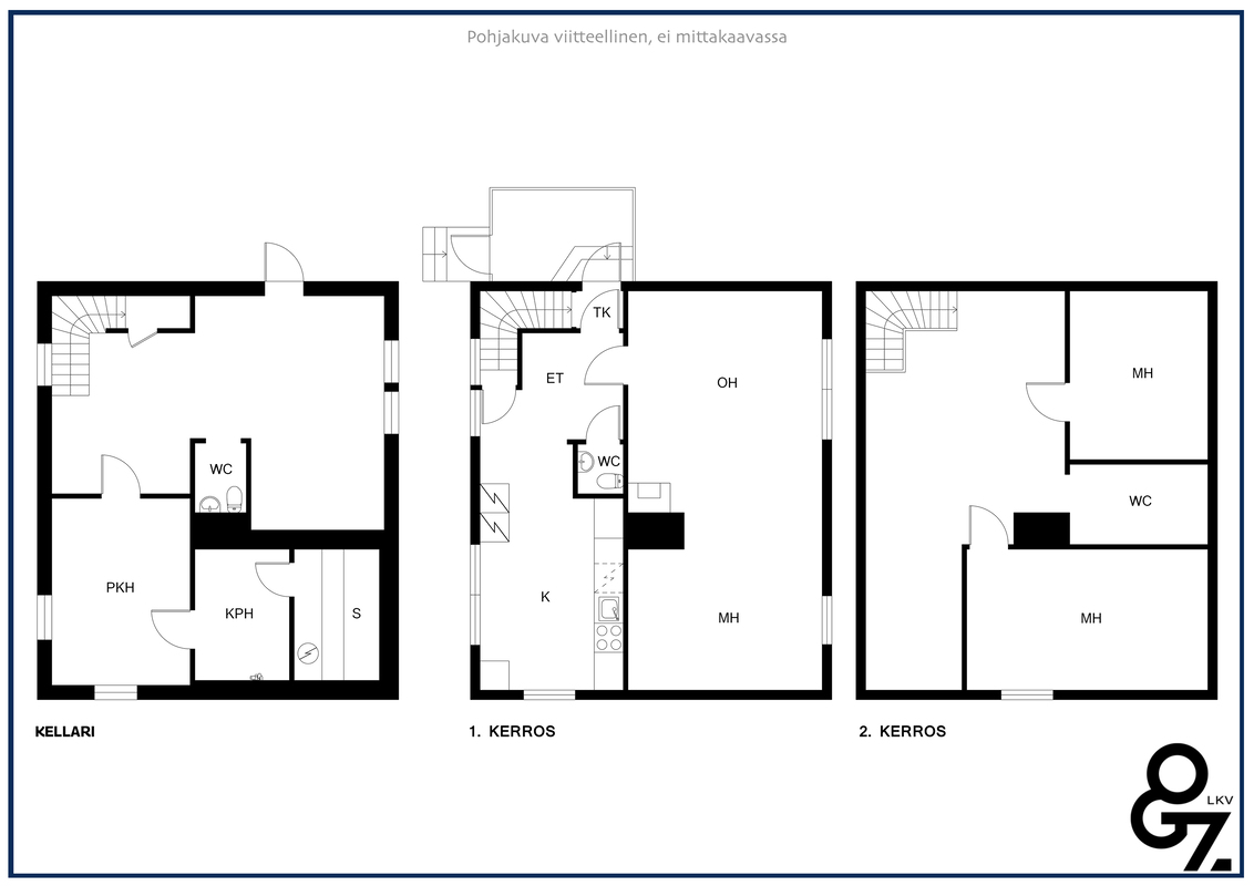 Asuintilat ovat kolmessa kerroksessa. Yläkerrassa on kaksi makuuhuonetta ja wc. Säilytystilaa on hyvin viistokaton alla. Sisääntulokerroksessa on keittiö, olohuone, makuuhuone ja wc. Kellarikerroksessa on kylpyhuone, sauna, kodinhoitotila ja huone, joka toimii tällä hetkellä makuuhuoneena.