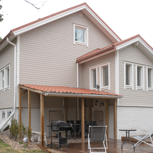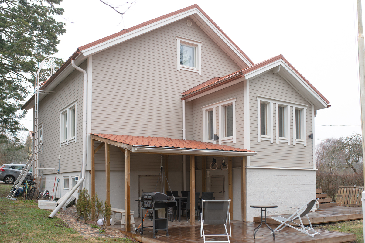 Myyjät ovat kunnostaneet pintoja, vaihtaneet julkisivun mineriittilevyt puuvuoraukseen ja viimeisimmäksi tehneet terassin pihaan.
