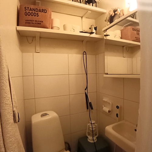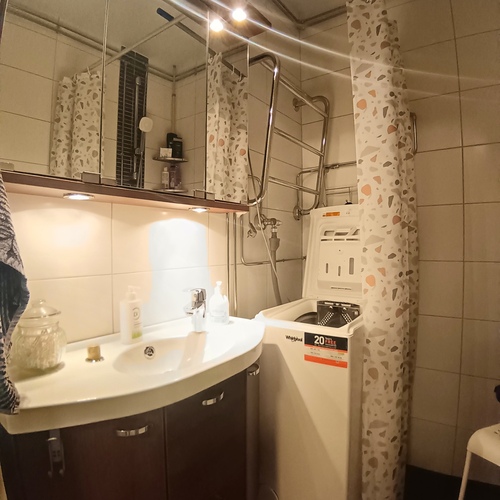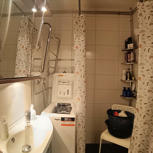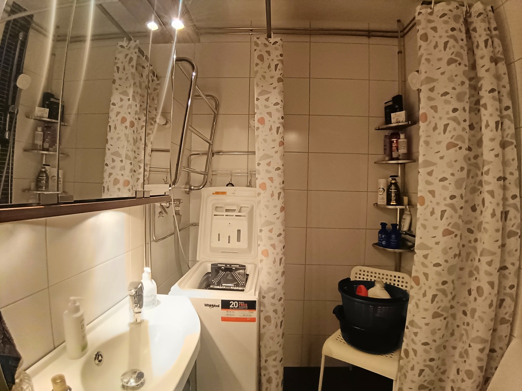 Varusteet: pesukoneliitäntä, wc-istuin, suihku, asennettuja erikoisvarusteita