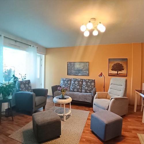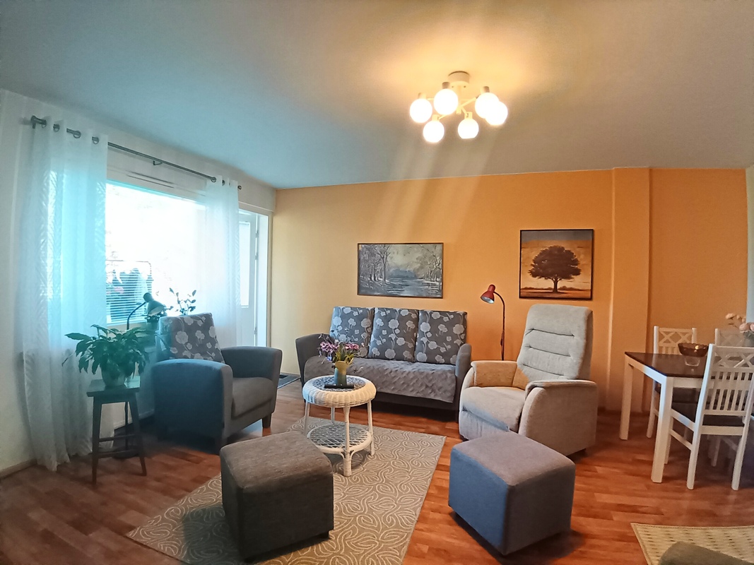 Lähes katutason huoneisto 3 h + k + kph/wc + wc + et + vh + parveke.