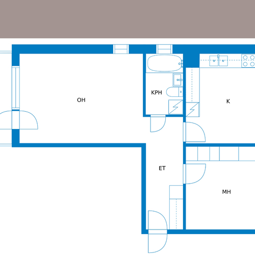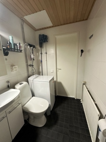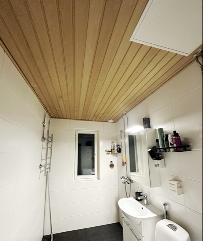 Varusteet: pesukoneliitäntä, wc-istuin, suihku, peilikaappi, kylpyhuonekaapisto, asennettuja erikoisvarusteita
