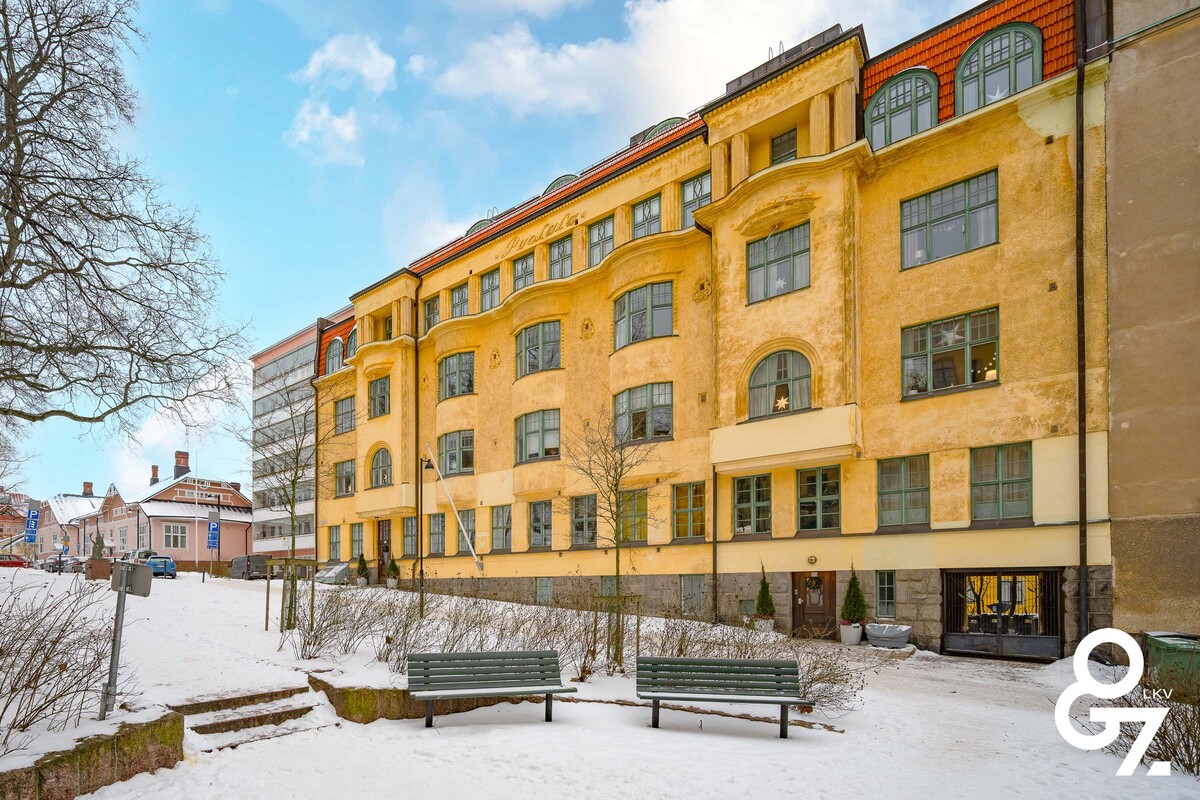 Asunto sijaitsee yhdessä alueen upeimmista jugendlinnoista Asunto-Osakeyhtö Puolalassa. Tämä myynnissä oleva upea asunto on läpitalon huoneisto, jossa on korkeat huoneet, uniikit ikkunat, ovet, takka ja iso parve. Asunnon khp on uusittu 2015 ja kaikki dokumentit tästä löytyvät. Taloyhtiön pystyviemärit on kuvattu 2000-luvun alussa ja silloin niissä ei havaittu mitään sellaista, että uusiminen olisi tarpeellista. Asuntoyhtiö saa pitkäaikaista vuokratuloa omistamastaan maapohjasta, jolla sijaitsee Läntisen Pitkäkadun uusi. Taloyhtiö on vakavarainen ja velaton. Erittäin edullinen yhtiövastike. Taloyhtiön alakerrassa kuntosali (50€/asunto/vuosi) asukkaiden käyttöön. Talossa ei ole hissiä.
