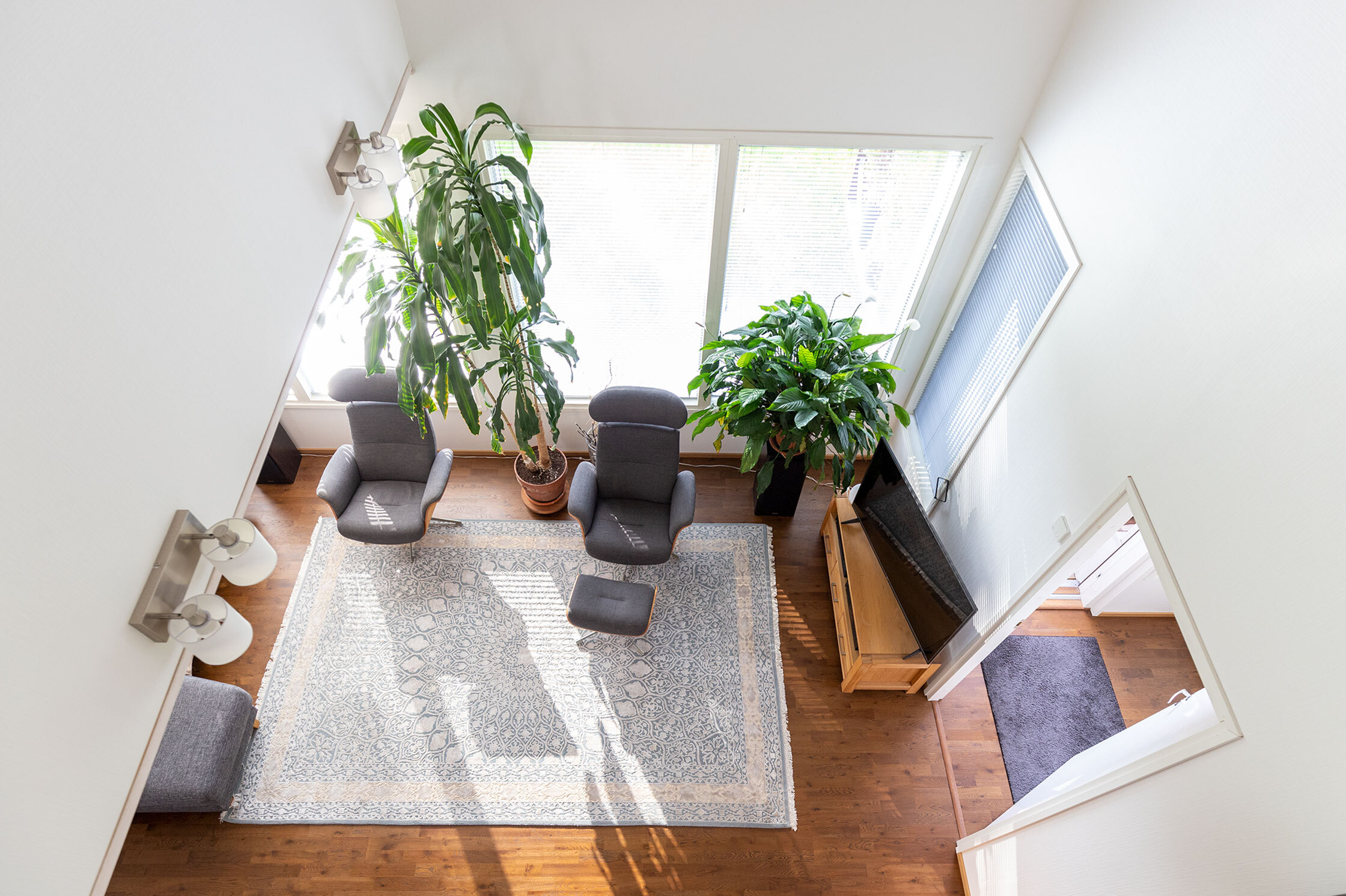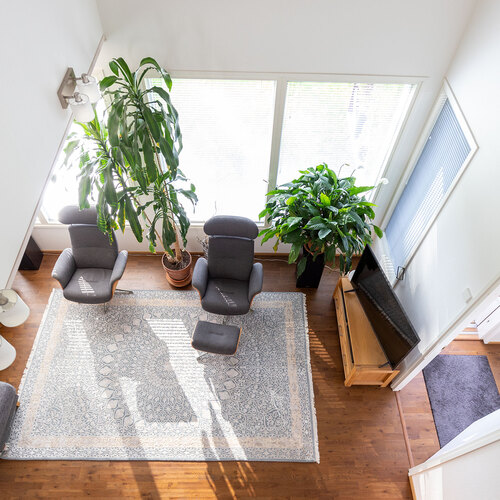 Varusteet: sälekaihtimet/rullaverhot, keskuspölynimuri, kiinteät valaisimet, lämminvesivaraaja, hälytys- /valvontajärjestelmä, jätesäiliö, istutukset
