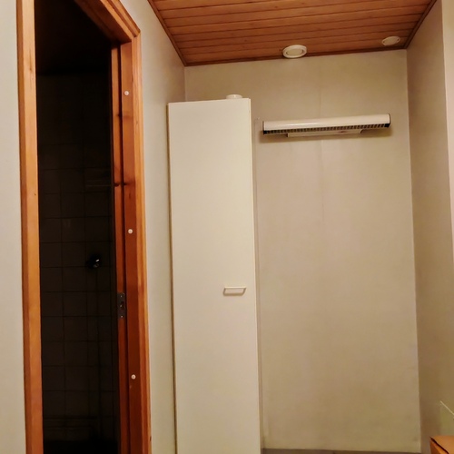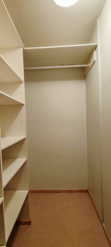 Huoneistossa on tilava vaatehuone sekä runsaasti kaapistoja tavaroiden säilytykseen.
