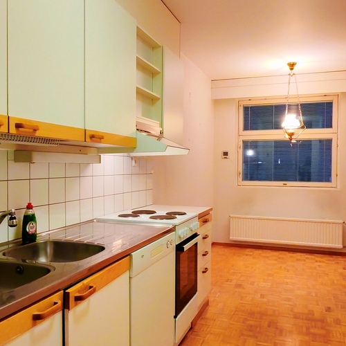 Siisti huoneisto tarjoaa toiminnallisen pohjaratkaisun ja viihtyisän asumisen. Lattiat ovat kaunista liimaparkettia eteisessä, keittiössä ja olohuoneessa.