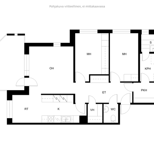 Huoneistoon esteetön kulku, sijaitsee ensimmäisessä kerroksessa.