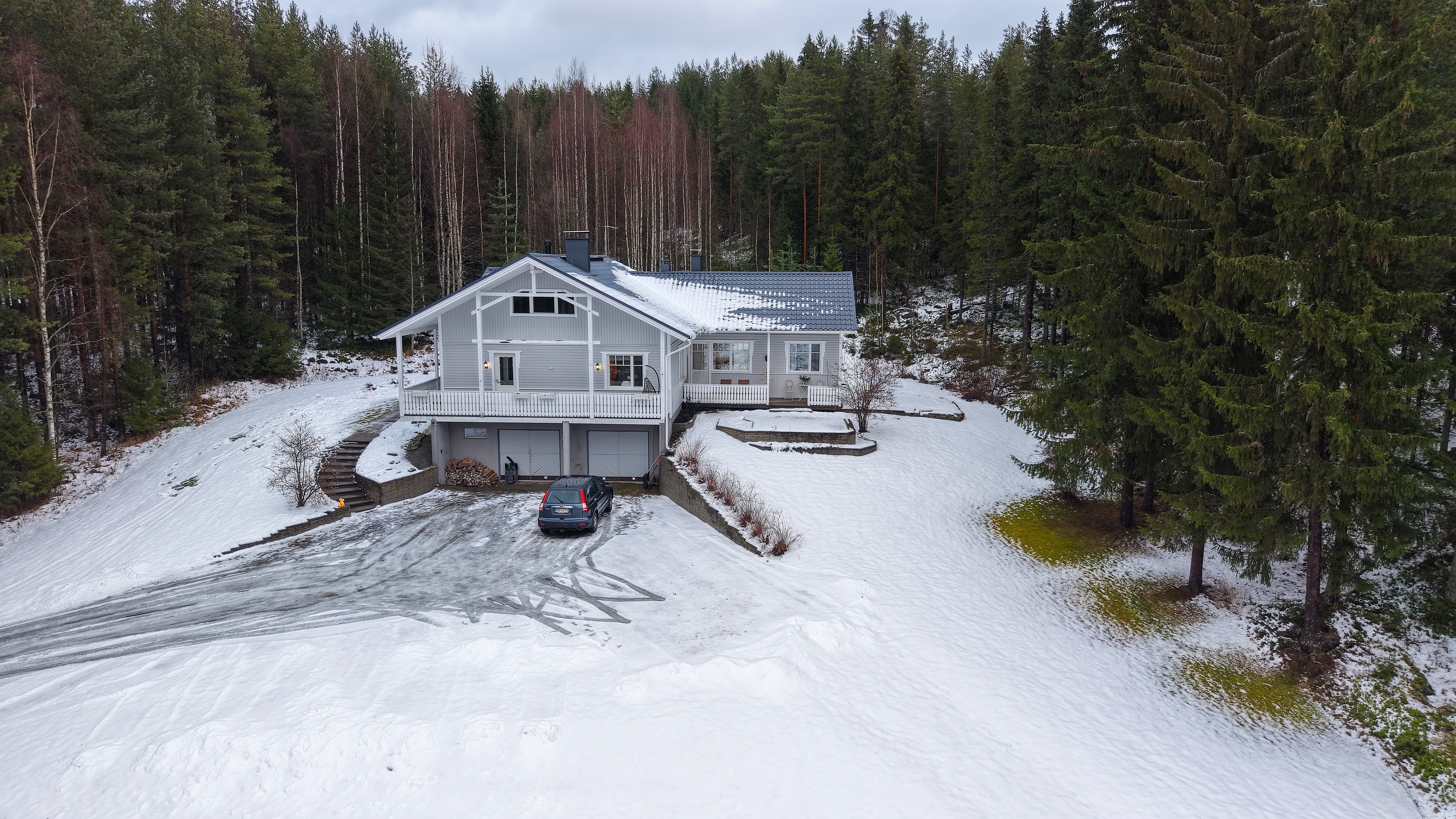 Koti sijaitsee kauniilla, puuston ympäröimällä rinnetontilla, jonka pinta-ala on 1,50 hehtaaria.