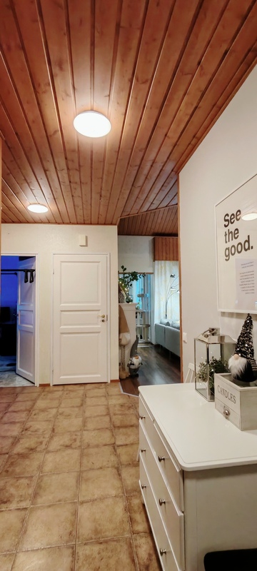 Kaksikerroksinen koti sijaitsee maaseudun rauhassa, vain viiden kilometrin päässä Lieksan keskustasta. Kodin kuusi huonetta ovat huonekorkeuden ansiosta tilavia ja valoisia.
