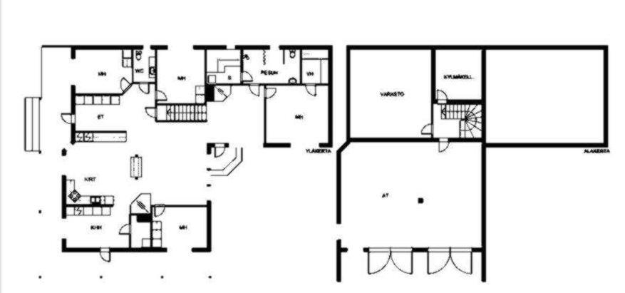 Kellarikerroksessa on tilava autotalli kahdelle autolle, varastot ja kylmäkellari.