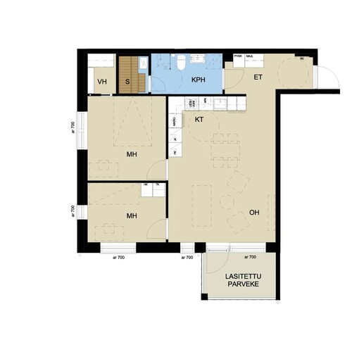 72 m²:n asunnosta löytyy vaihtoehtoinen pohjaratkaisu.