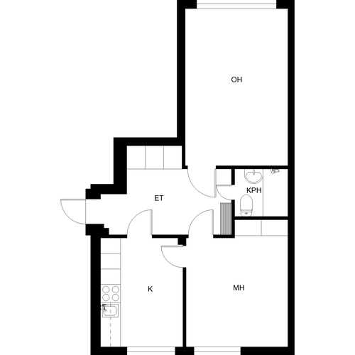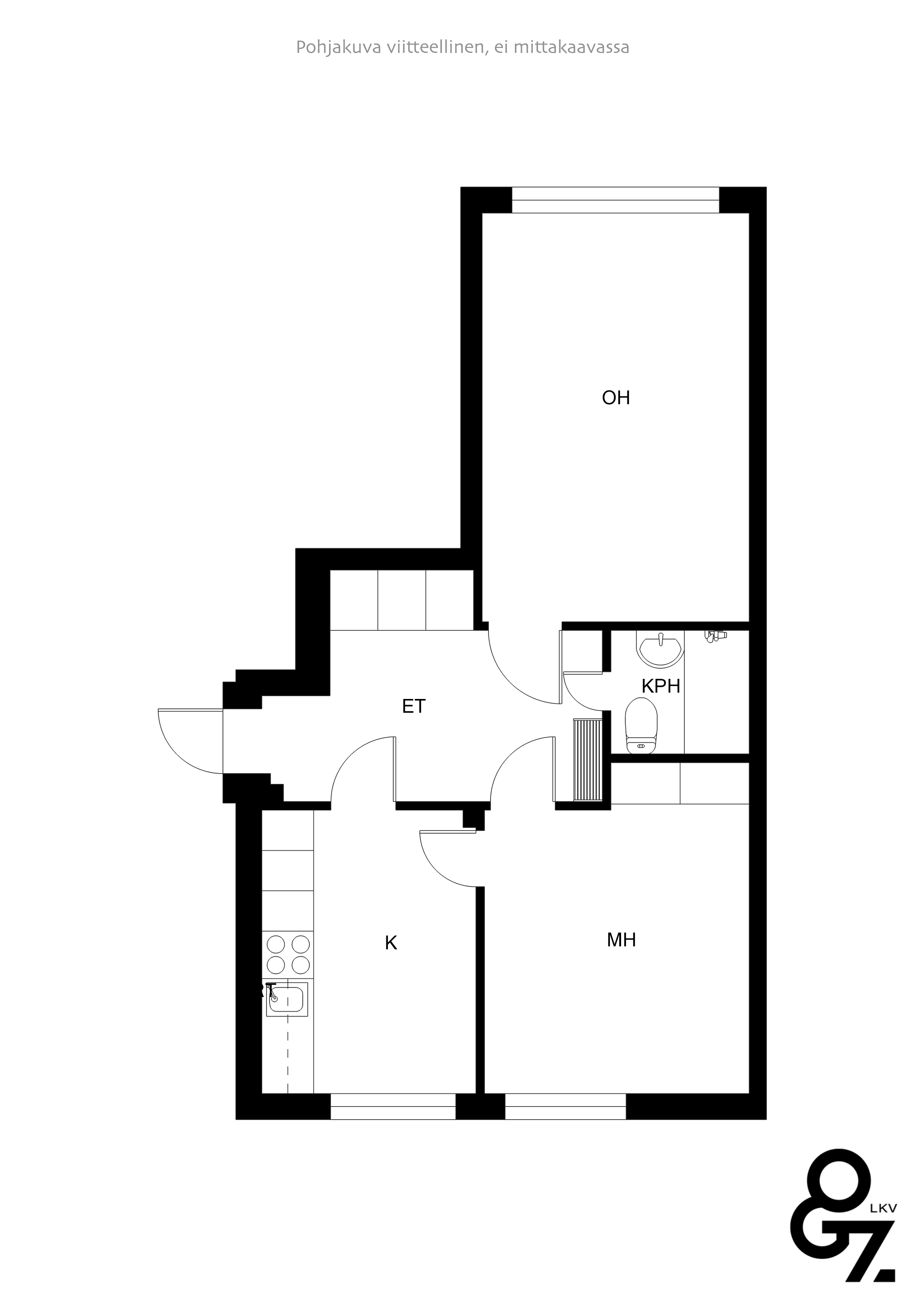 Hyttilänkatu 8, tilava kaksio 88 m², kolmas kerros.
