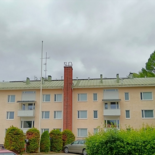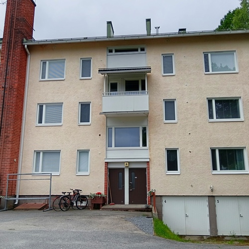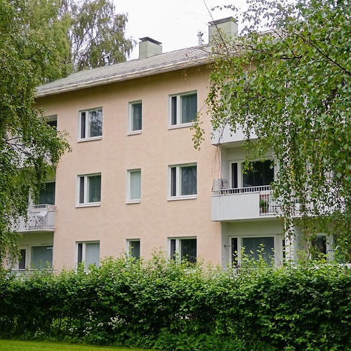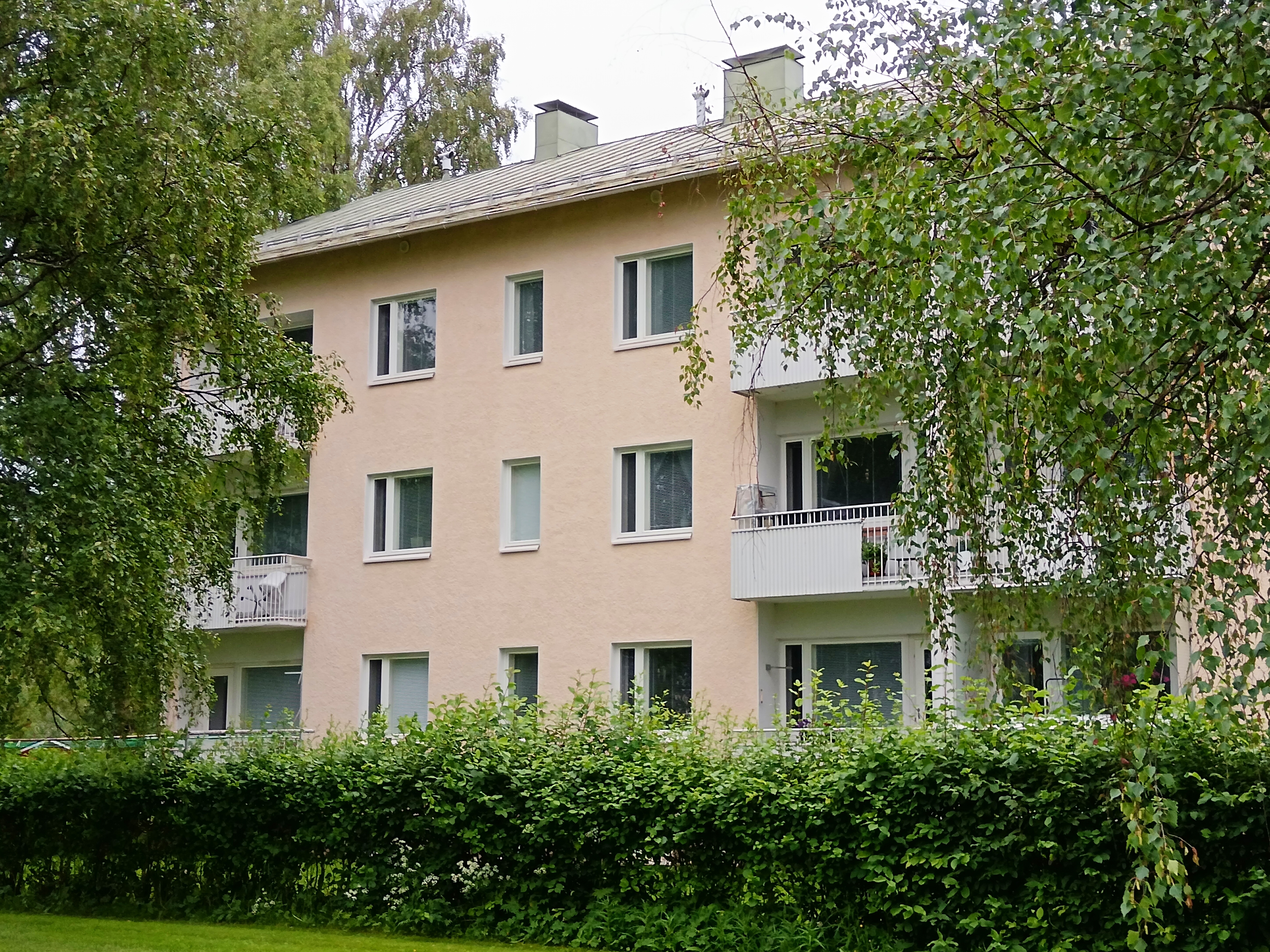 Kerrostalo on rakennettu v. 1957, taloyhtiö sijaitsee poikkikadun varrella.