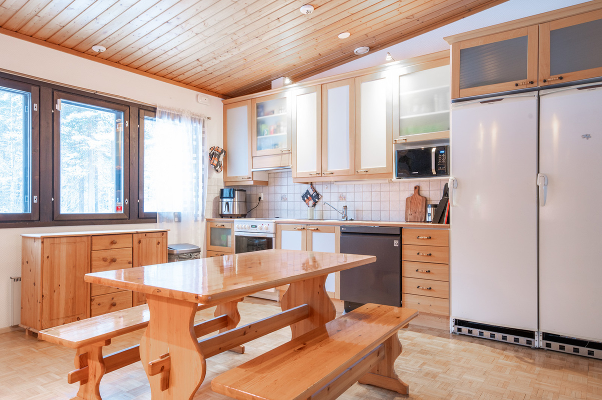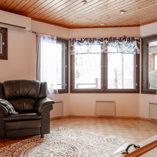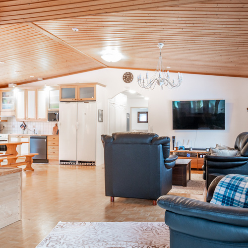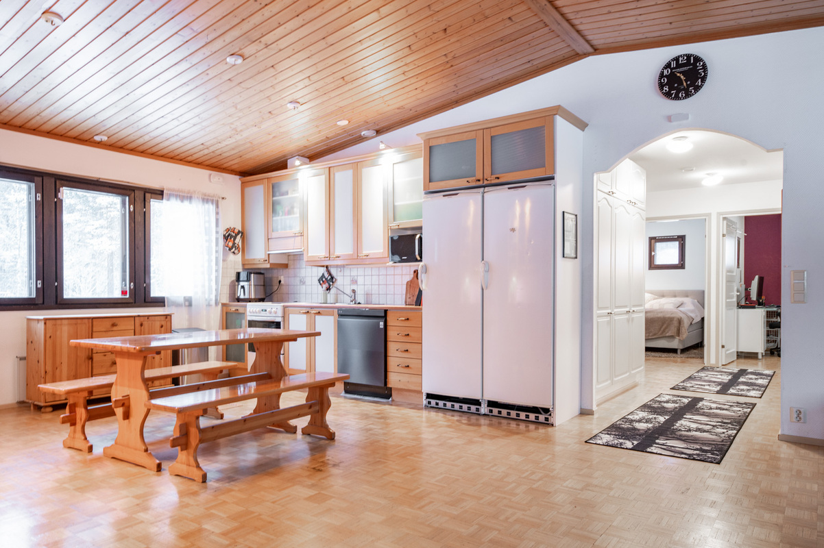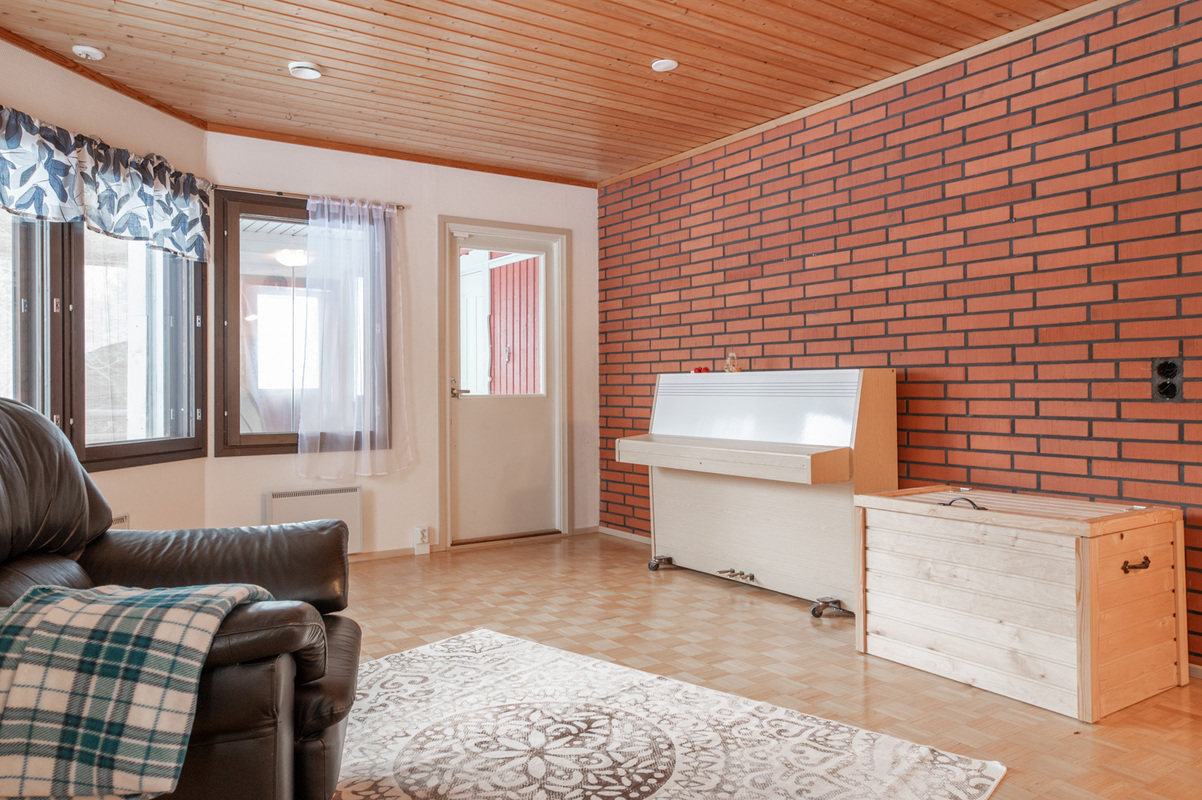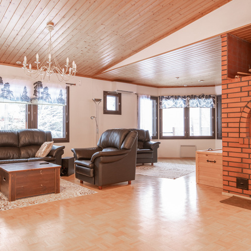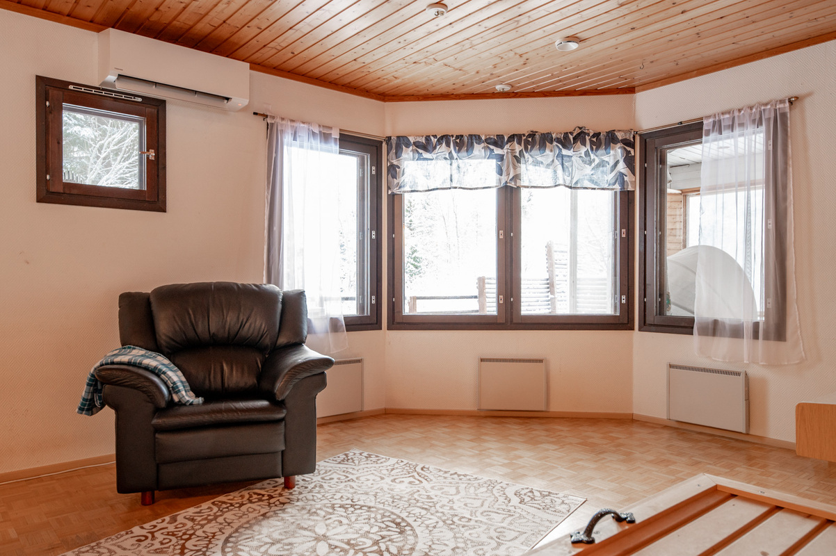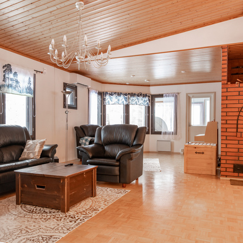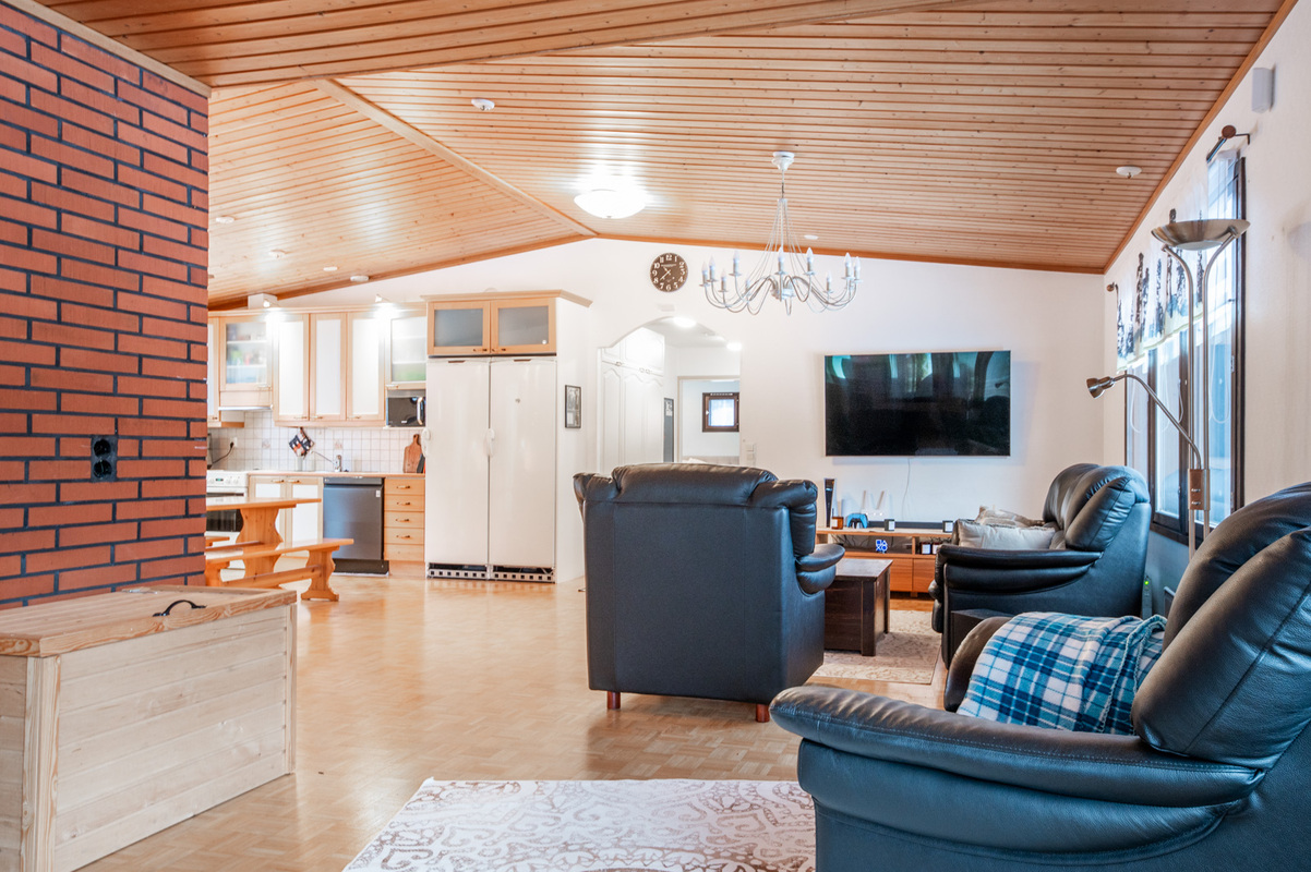 Kodissa on korotettu olohuone, joka tuo tilan tuntua ja valoisuutta. Lämmitystä ja asumismukavuutta tukevat ilmalämpöpumppu, aurinkopaneelit sekä iso leivinuuni.