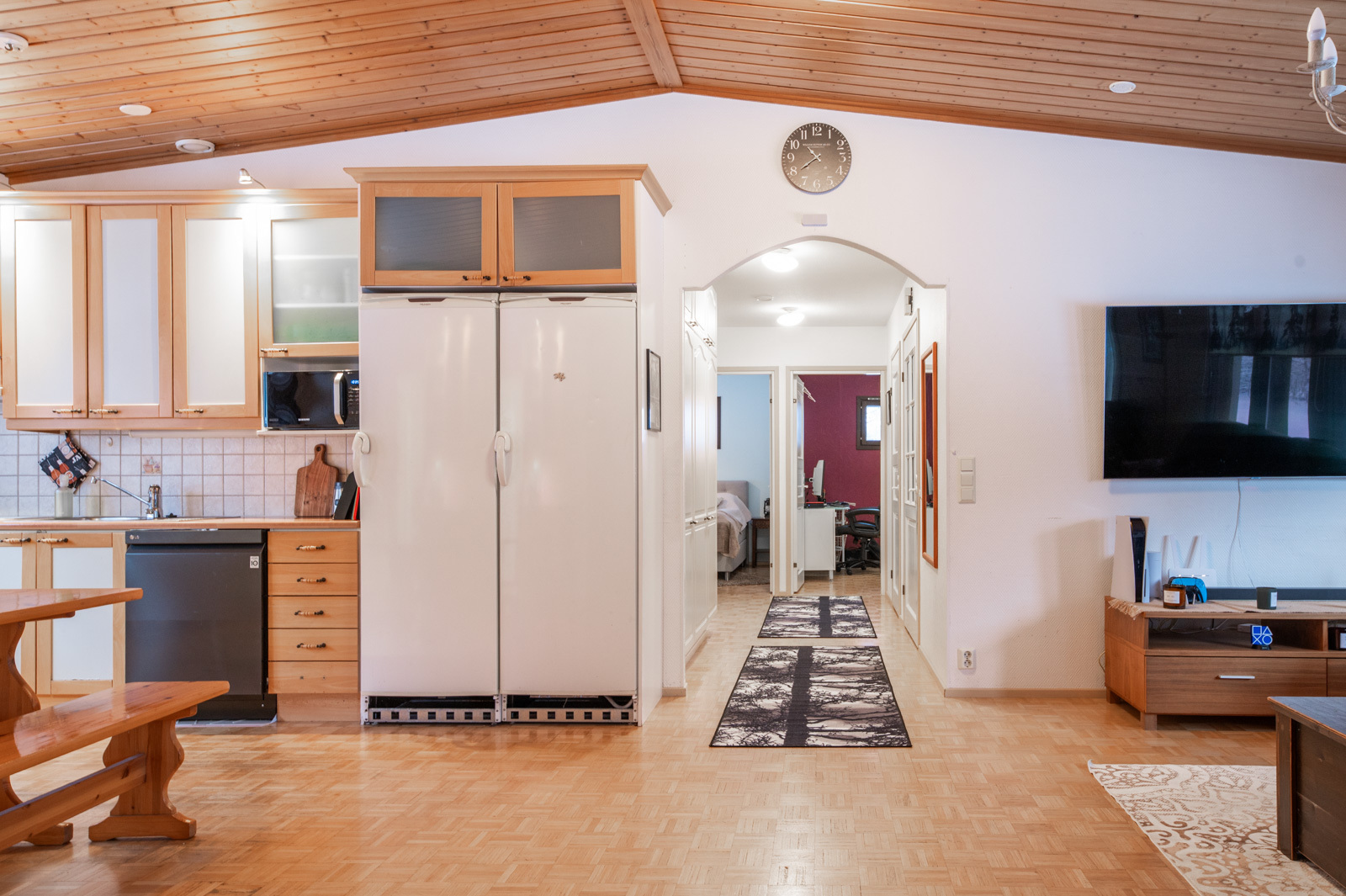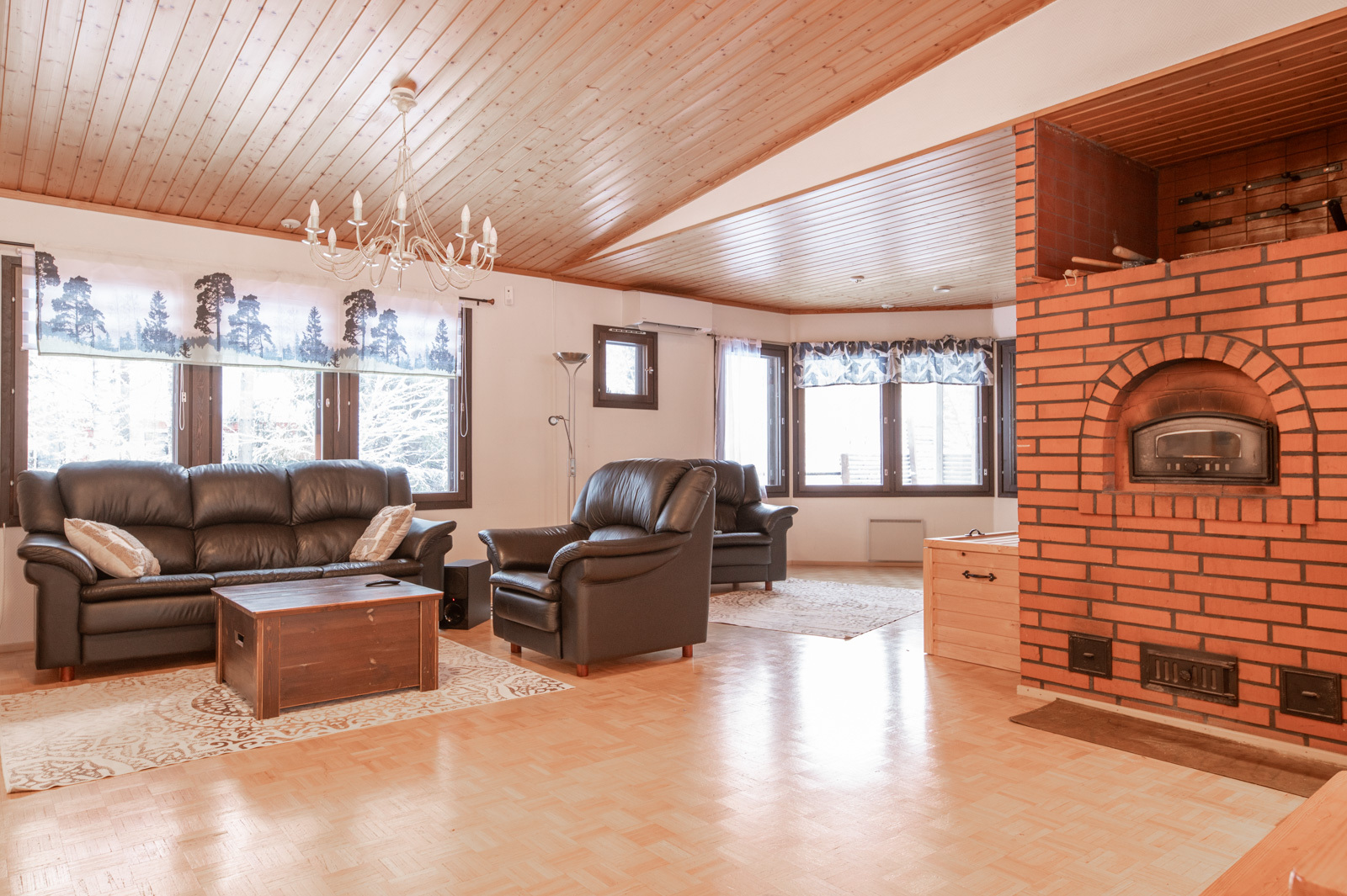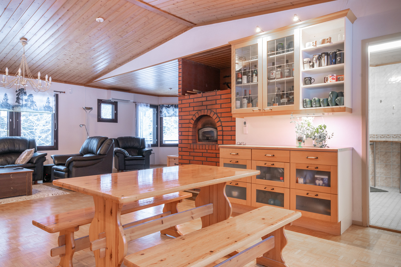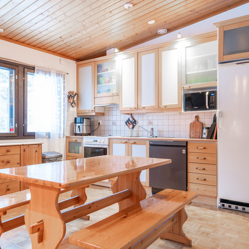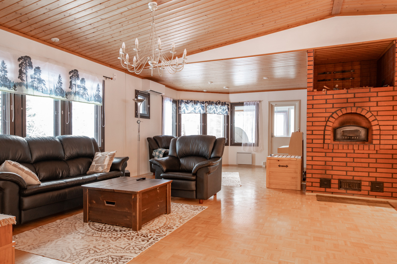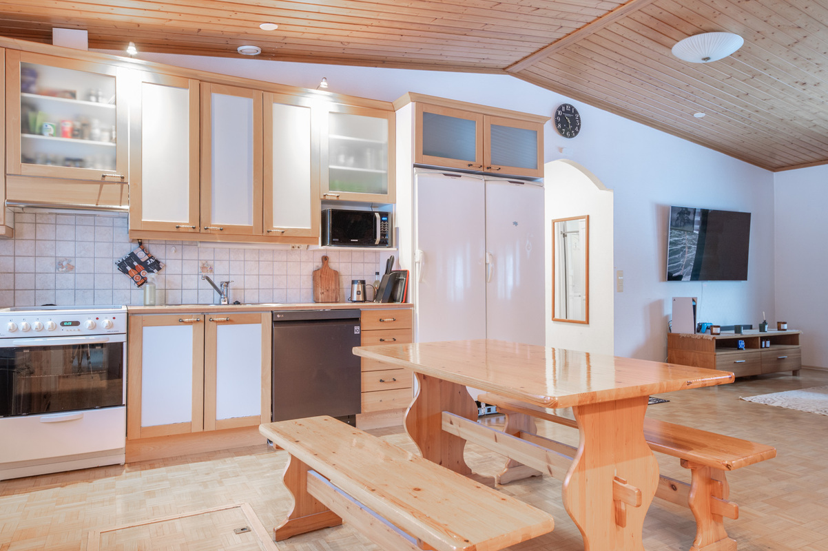 Kodissa on korotettu olohuone, joka tuo tilan tuntua ja valoisuutta. Lämmitystä ja asumismukavuutta tukevat ilmalämpöpumppu, aurinkopaneelit sekä iso leivinuuni.