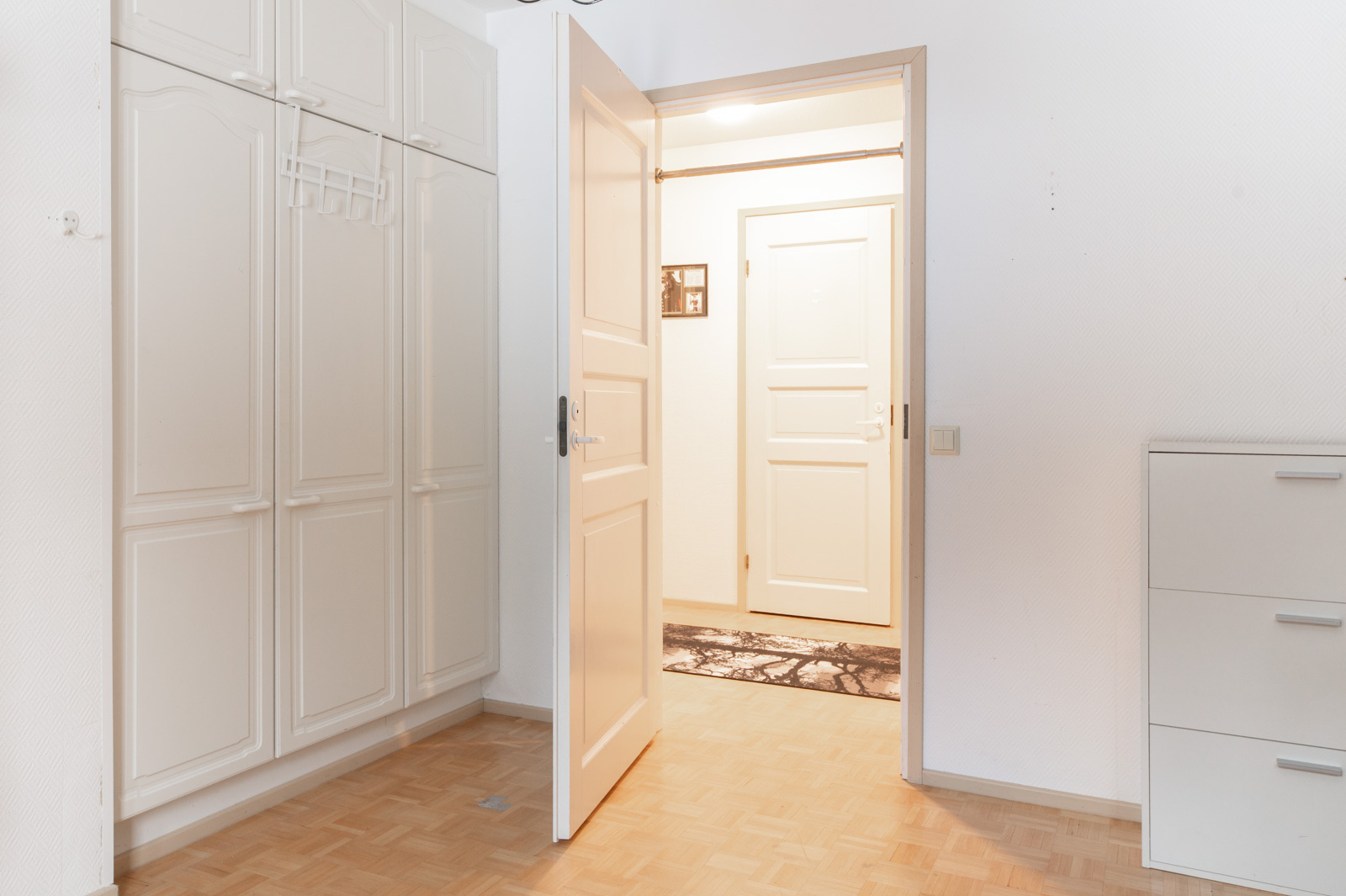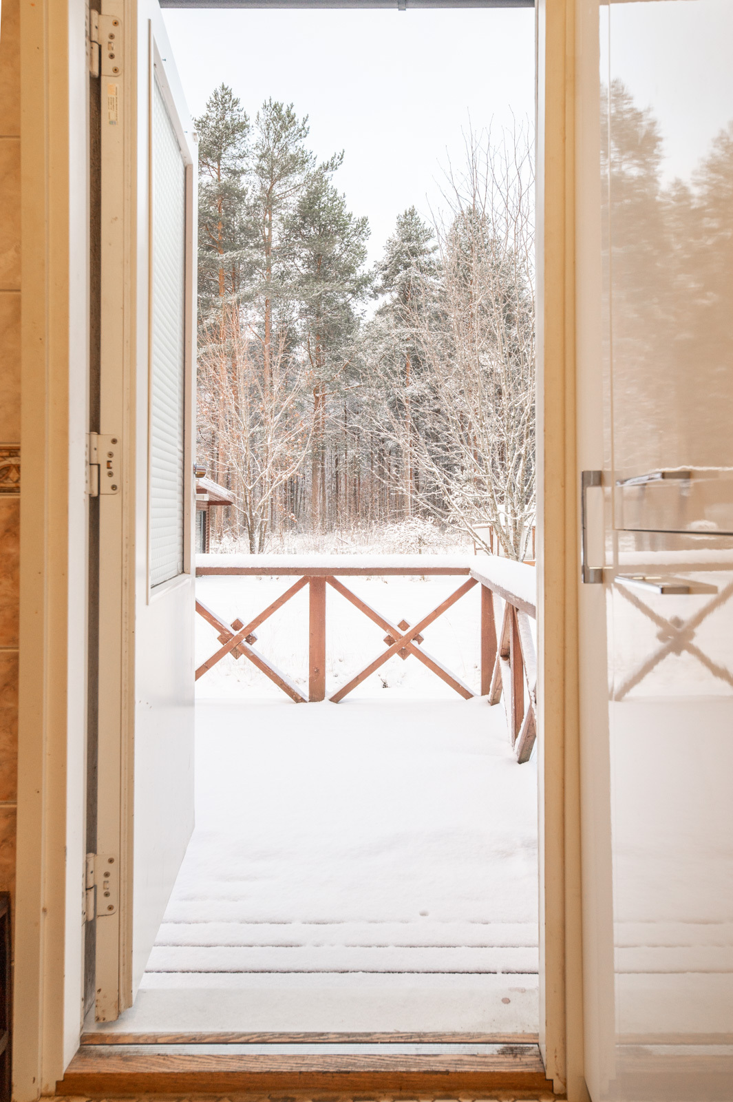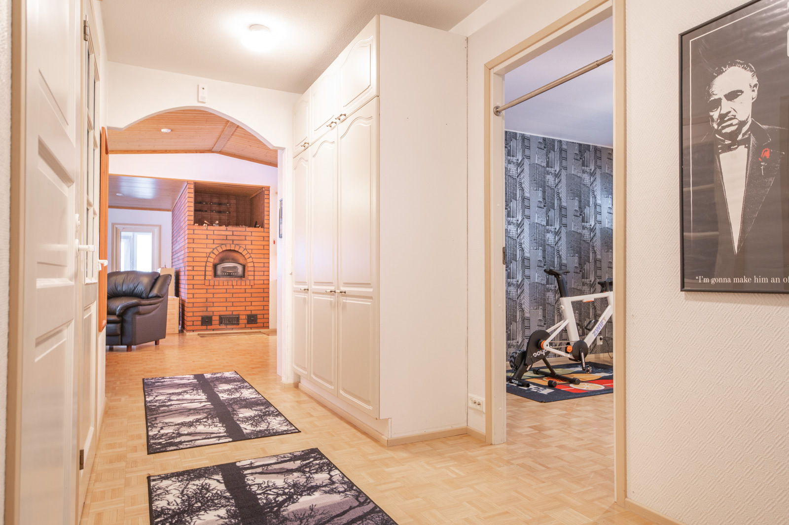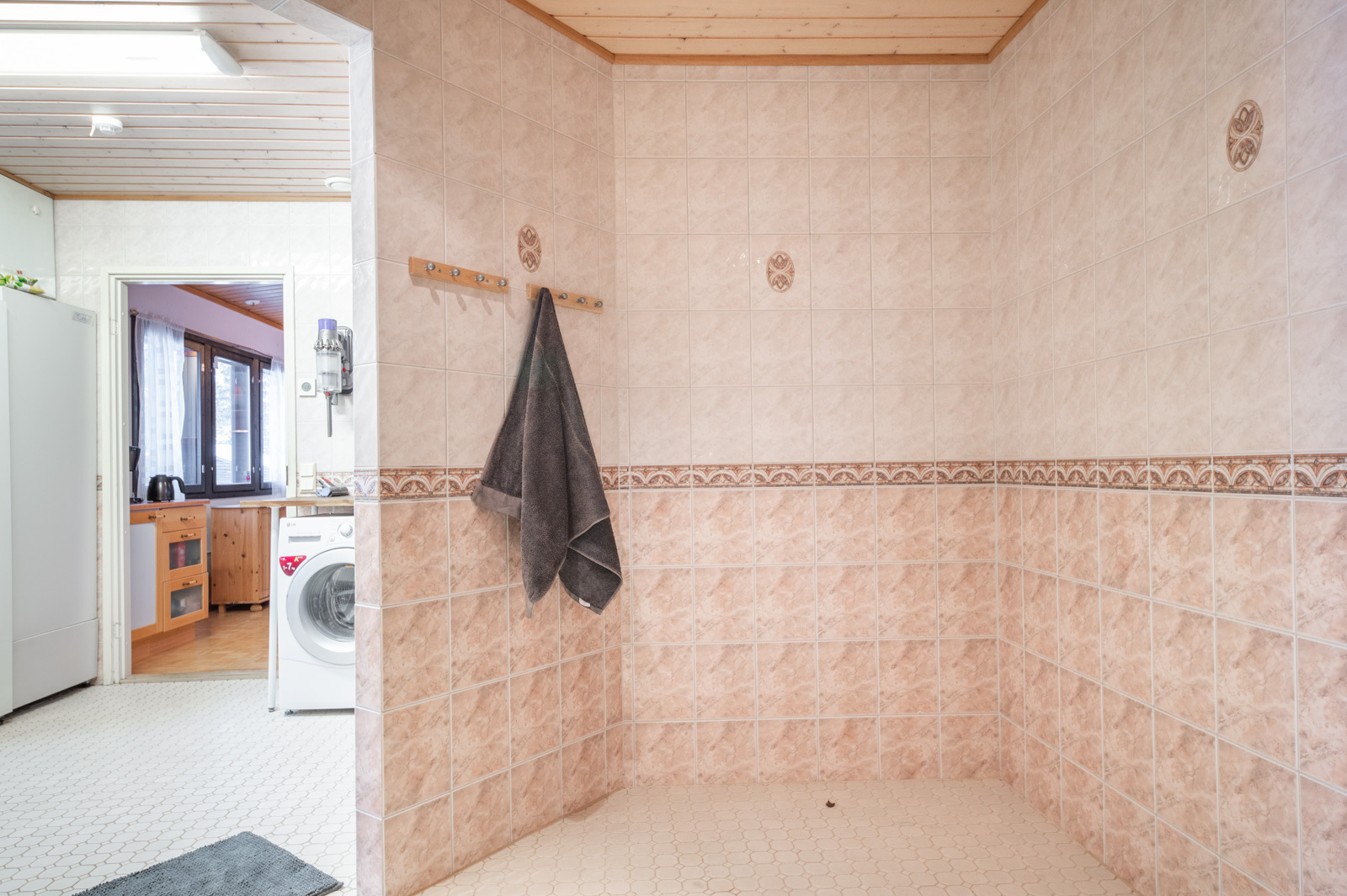 Talossa on lasitettu kuisti, jonka kautta kuljetaan erilliseen lämpimään huoneeseen, joka soveltuu mainiosti esimerkiksi varastoksi, työ- tai toimistohuoneeksi.