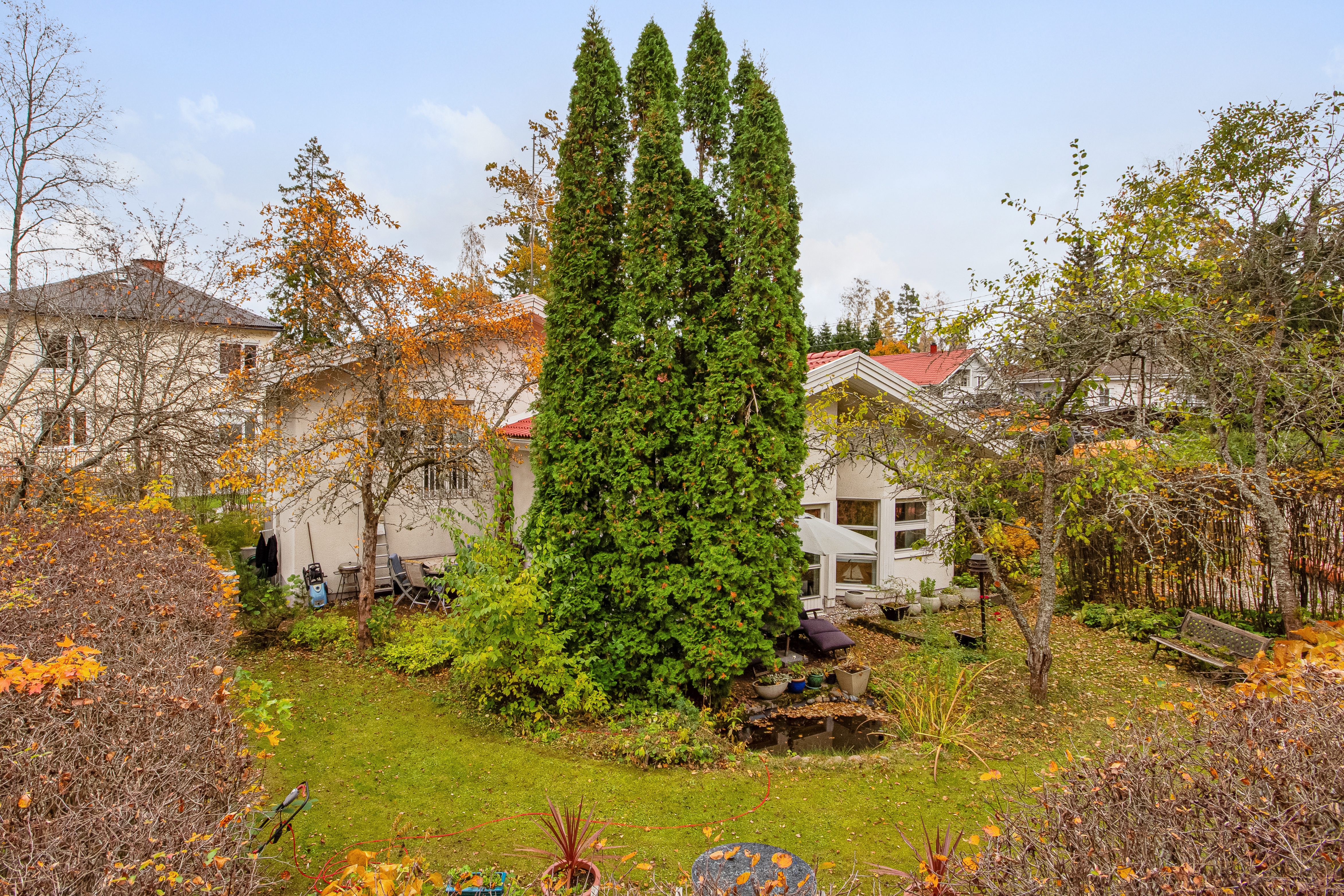 Varusteet: keskuspölynimuri, lämminvesivaraaja, ilmalämpöpumppu, istutukset