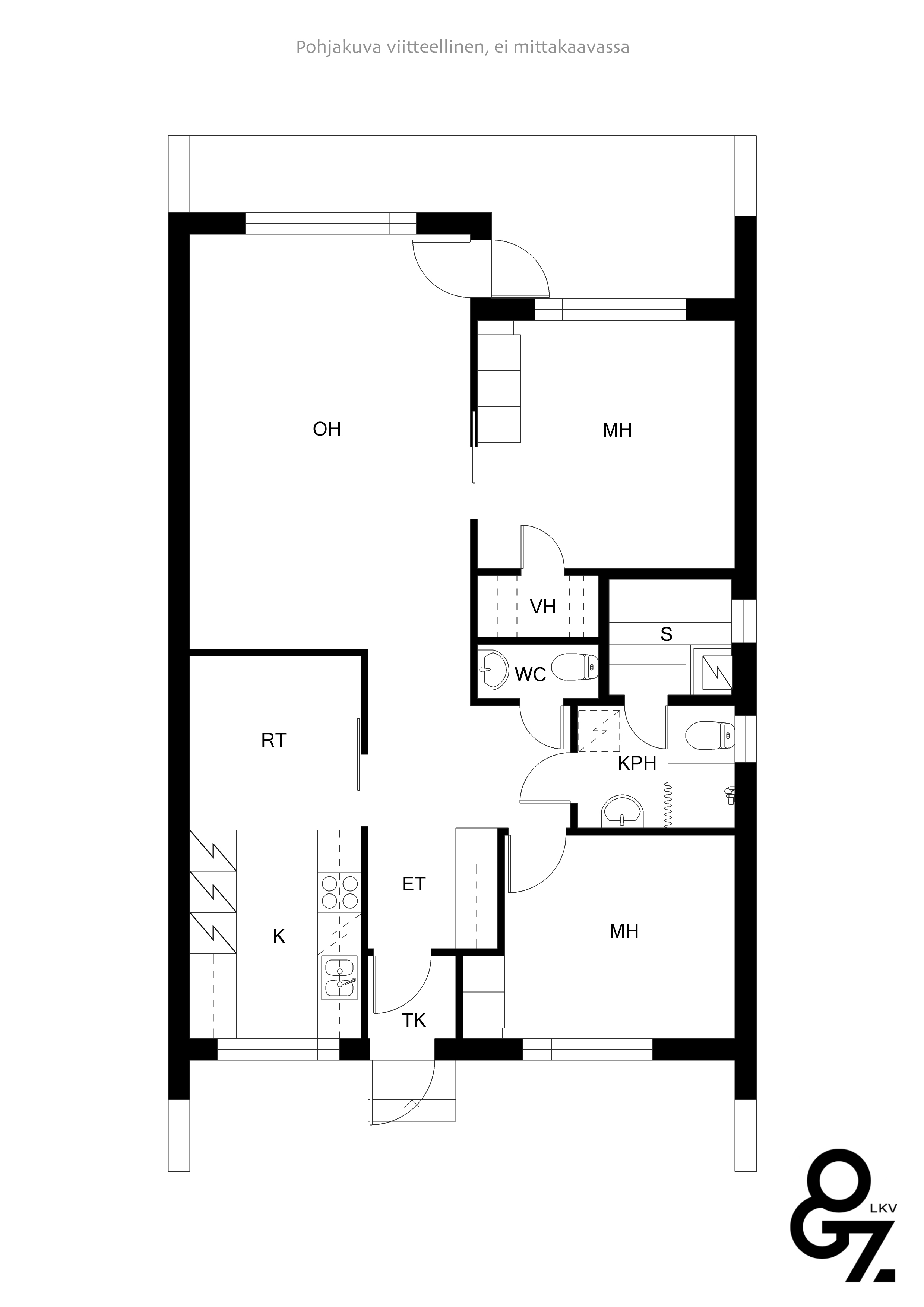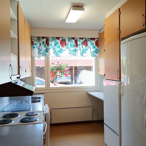 Kaksi huonetta + olohuone + keittiö + 2 wc + pesutilat + sauna