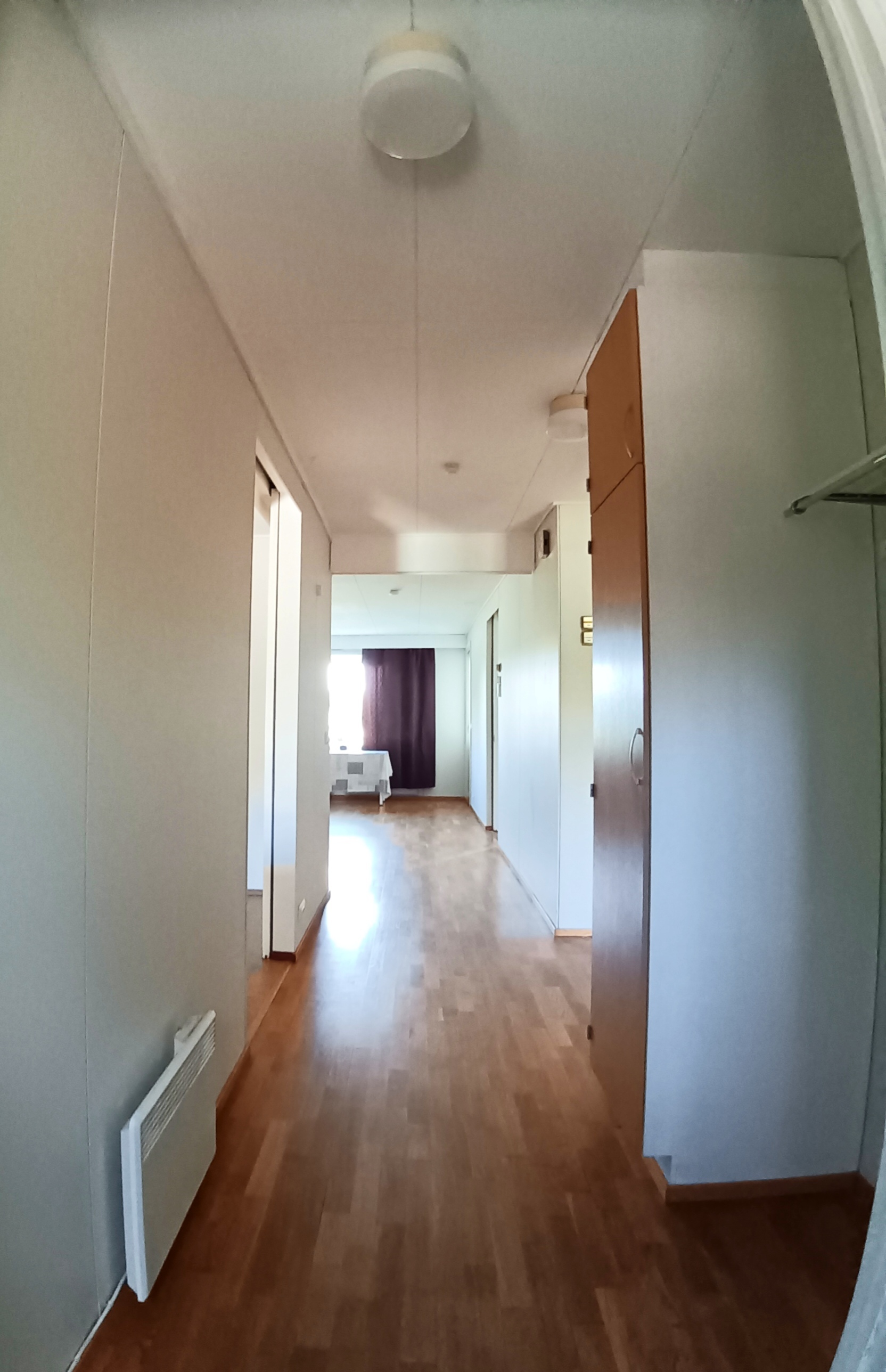Toisessa makuuhuoneessa tilava vaatehuone, huoneessa liukuovi, näkymä koilliseen.