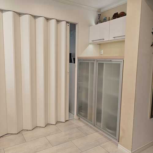 Monitoimi/varasto/työskentelyhuoneessa kaapistot.