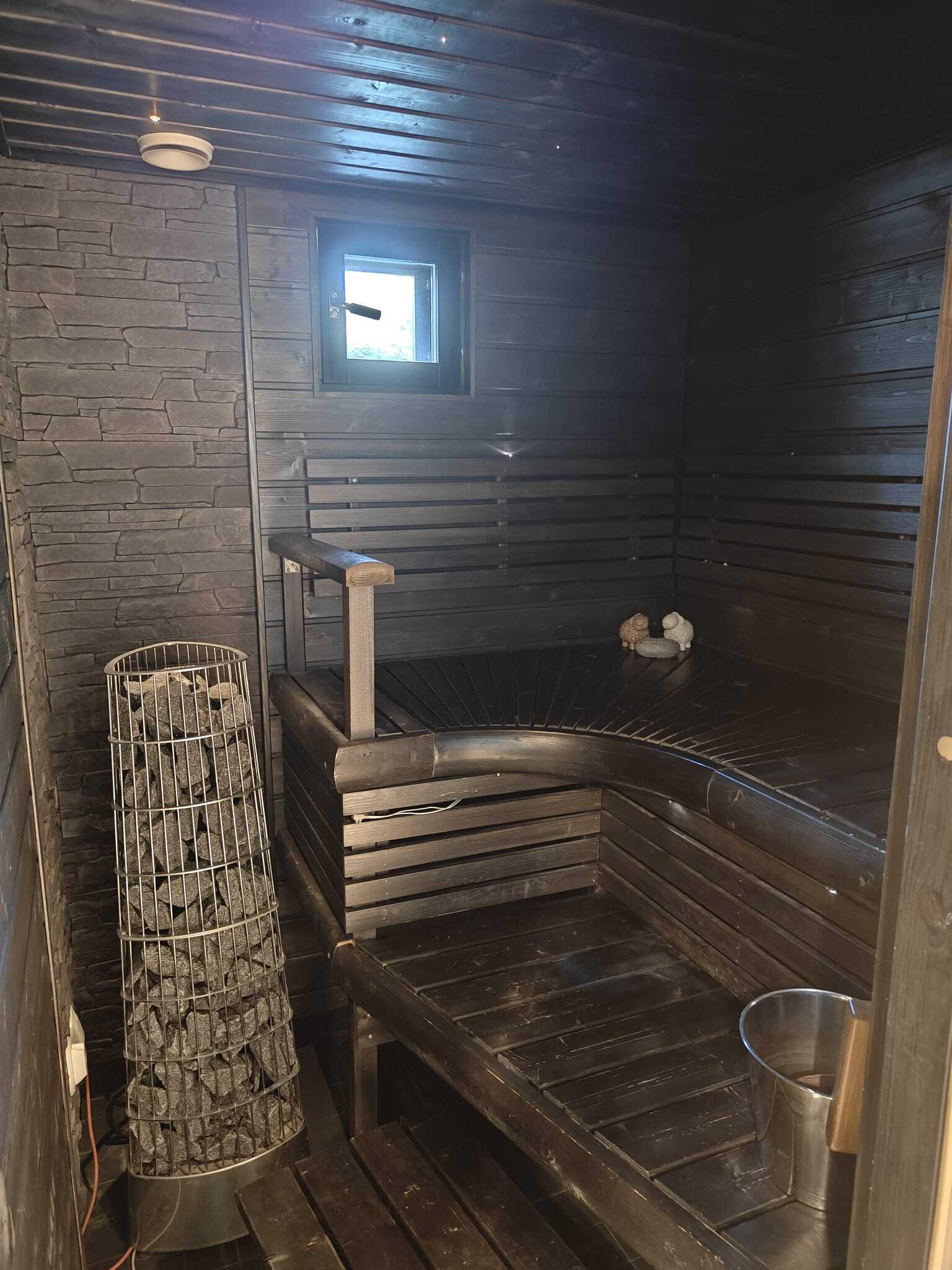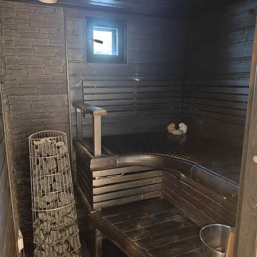 Kodissa on avara olohuone ja kolme makuuhuonetta. Tunnelmallinen takkahuone ja