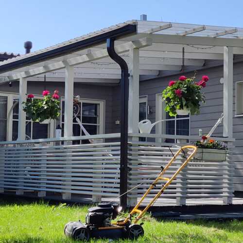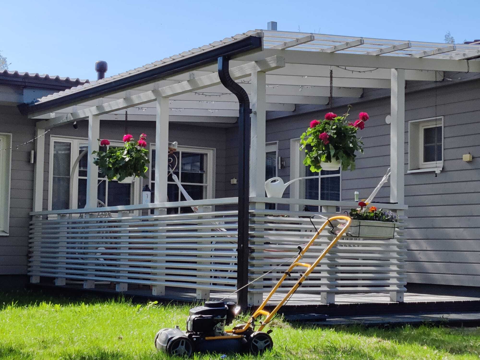 Talon päädyssä autokatos ja pannuhuone.