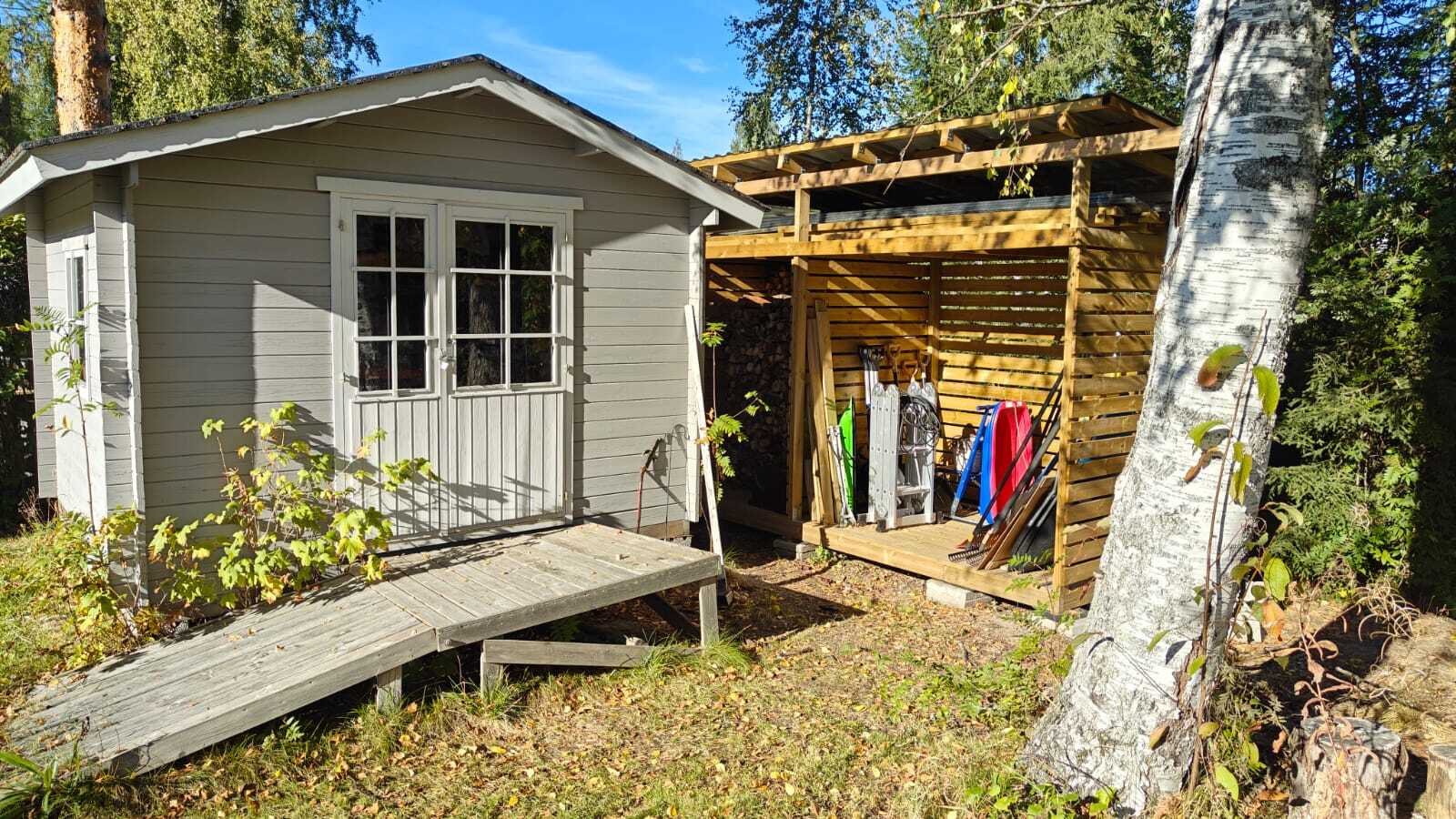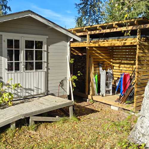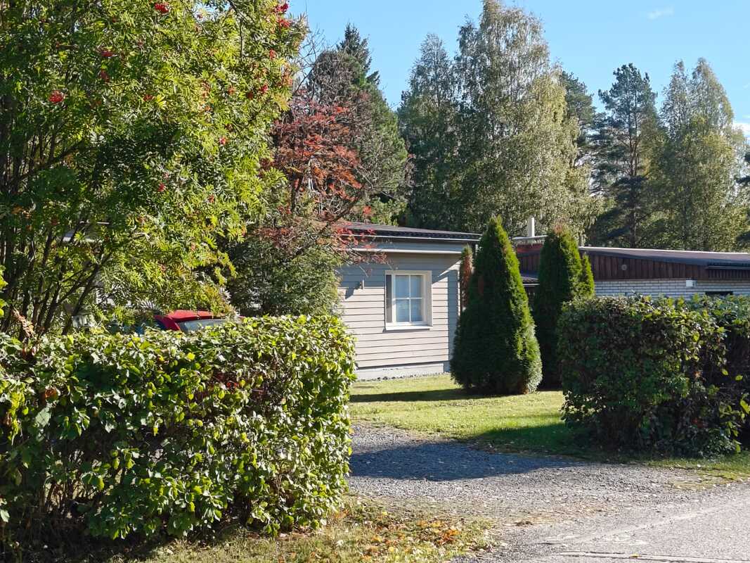 Oma tontti 900 m². Tontilla sijaitsevat hirsinen varastorakennus ja puukatos.
