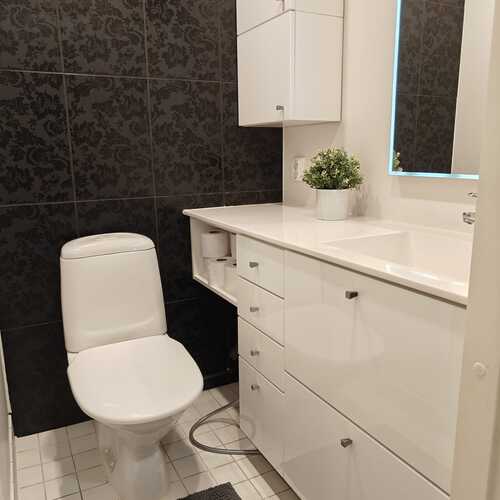 Varusteet: pesukoneliitäntä, lattialämmitys, wc-istuin, suihku